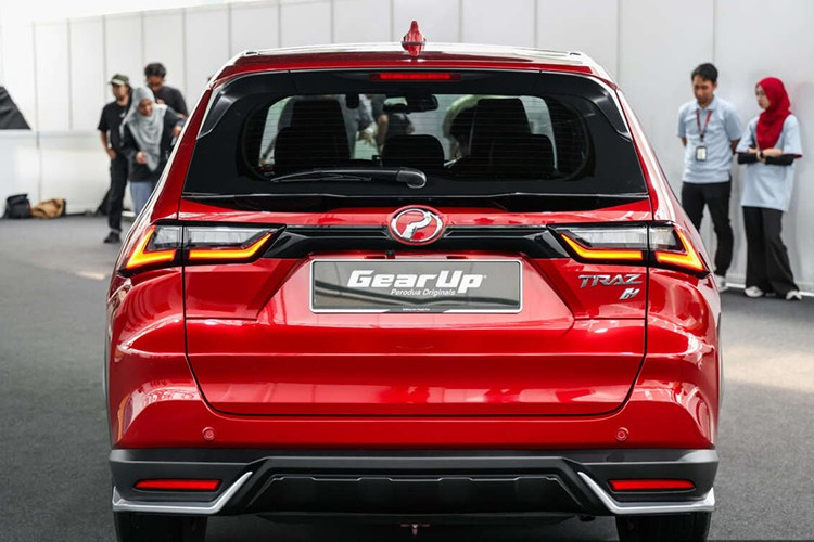Trang bị ngoại thất trên Perodua Traz ở mức khá trong phân khúc. Xe có đèn LED toàn phần, đèn định vị ban ngày LED, gương chiếu hậu gập điện tích hợp đèn báo rẽ, cánh gió sau và bộ mâm hợp kim 17 inch. Bản H được bổ sung thêm nhiều tiện ích đáng giá như cửa hậu đóng mở điện rảnh tay, đèn sương mù LED và đèn chào mừng tích hợp trên gương chiếu hậu.