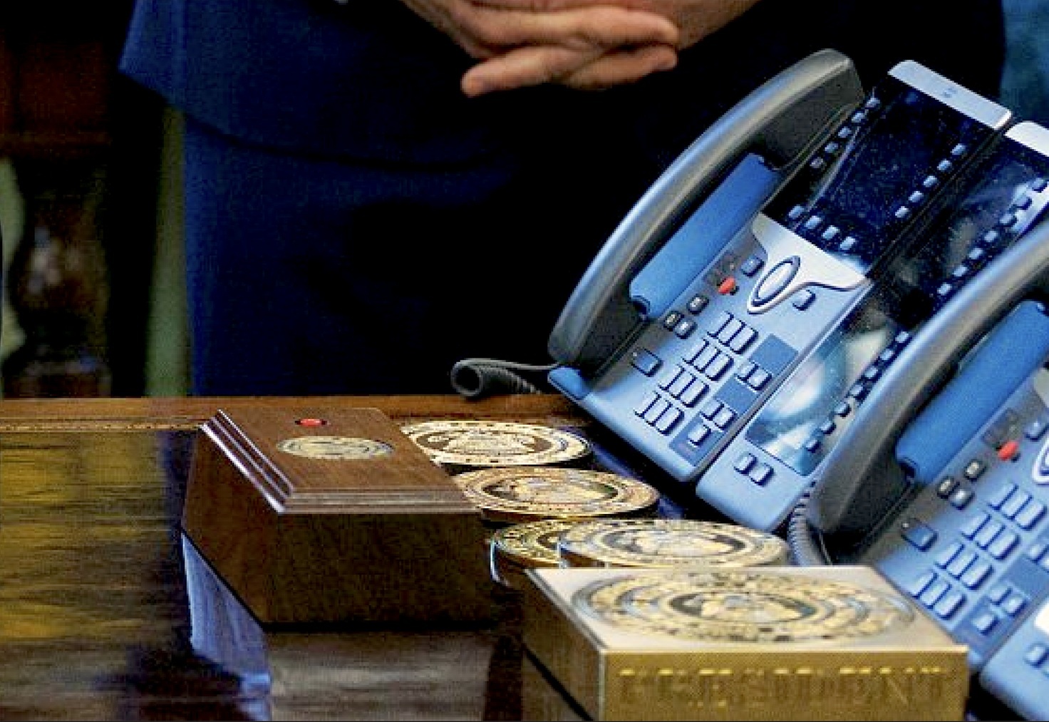 Trong khi đó, thỏi vàng là món quà của một công ty tinh luyện vàng vẫn trên bàn làm việc của Tổng thống. Thỏi vàng này nặng 2 pound (hơn 900 gram) với hai con số “45” và “47”, đại diện cho hai nhiệm kỳ của ông Trump. Ảnh: New York Times.