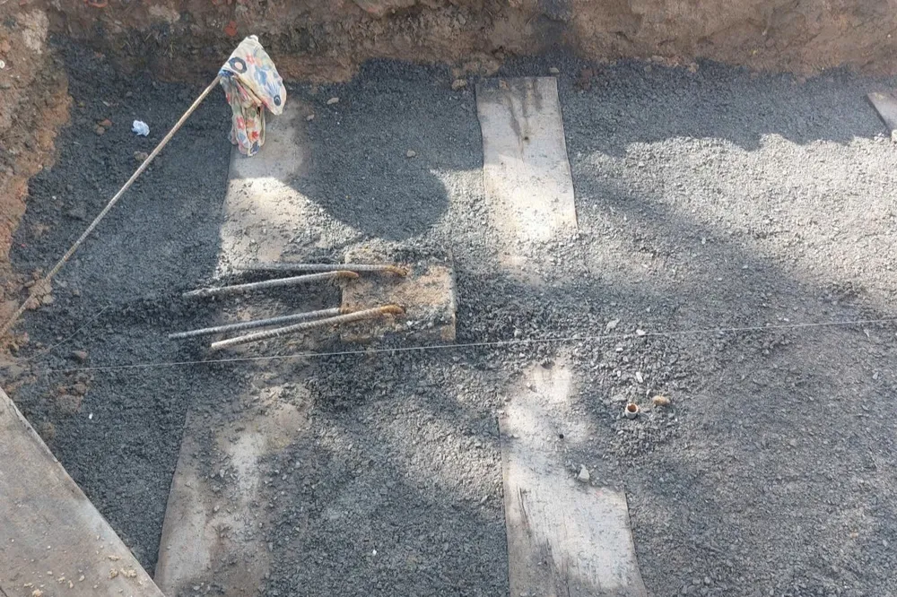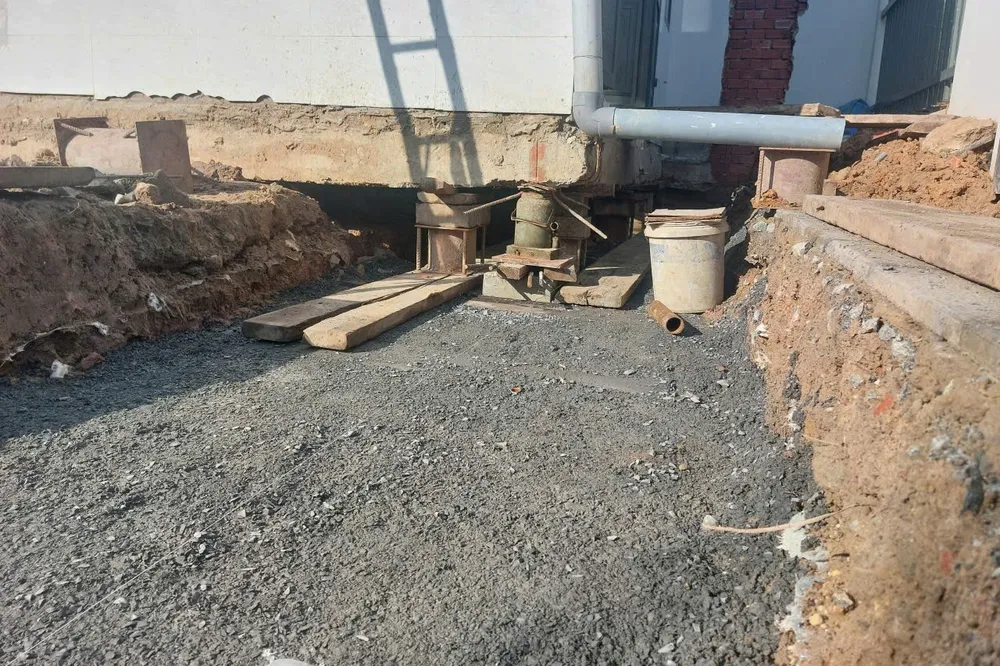 Theo ghi nhận, phần đất để dời ngôi nhà đến đã được ông T làm móng. Còn ngôi nhà đã được cắt dời hoàn toàn phần móng, đang dùng kích và sử dụng con lăn để di chuyển.