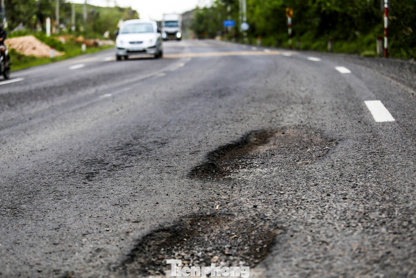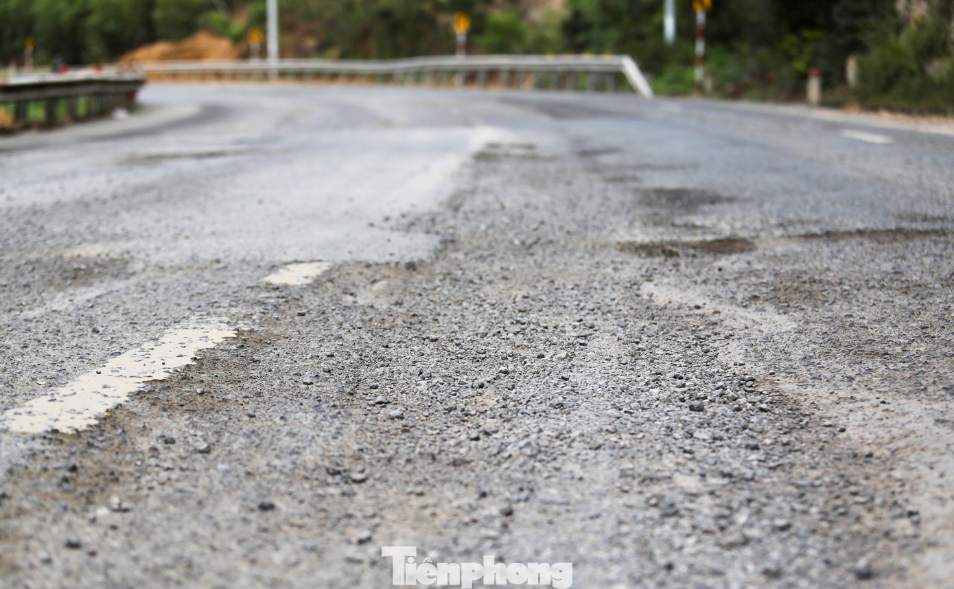 Theo ghi nhận của phóng viên Báo Tiền Phong, hiện nay, một số đoạn trên tuyến lởm chởm ổ gà, ổ voi. Ảnh: Trương Định.