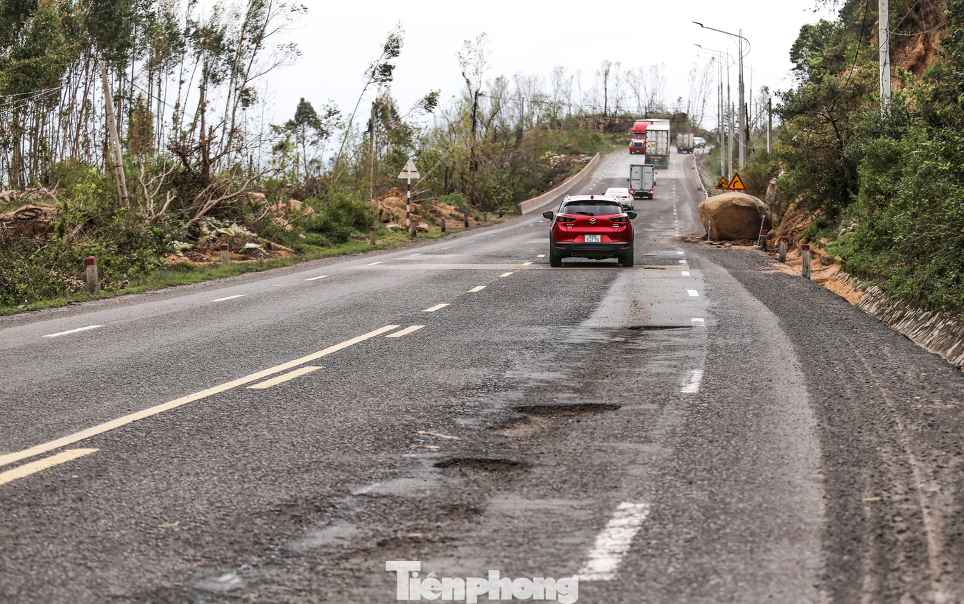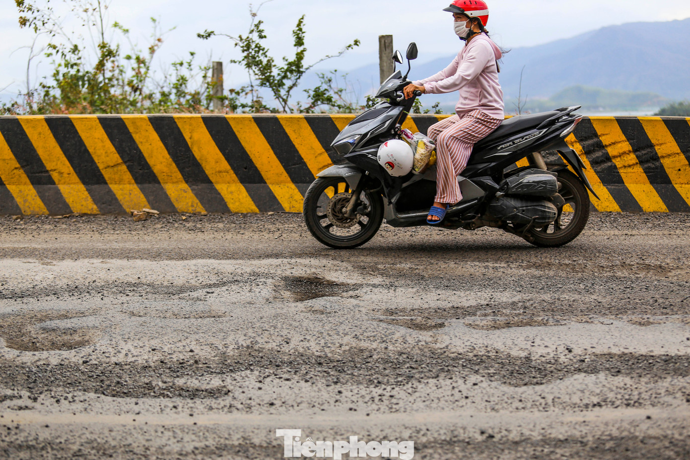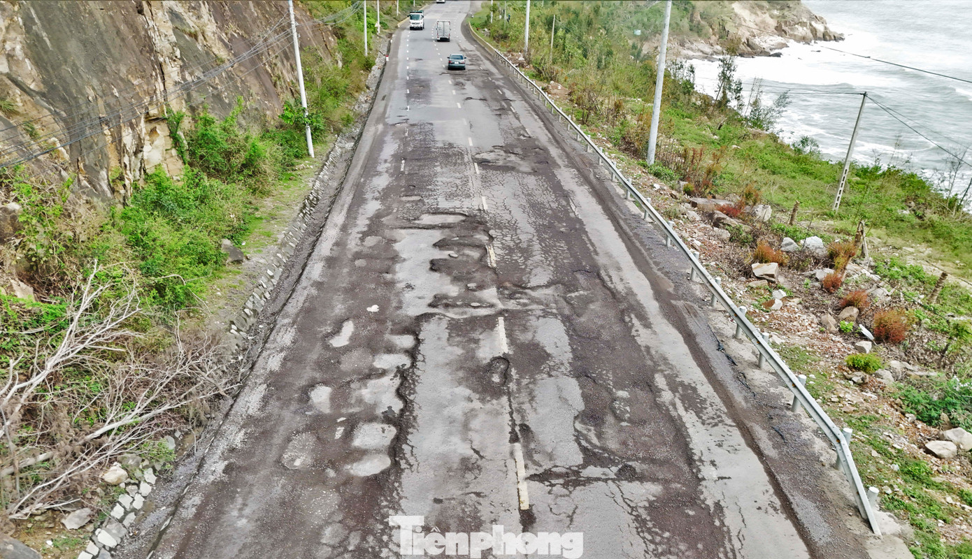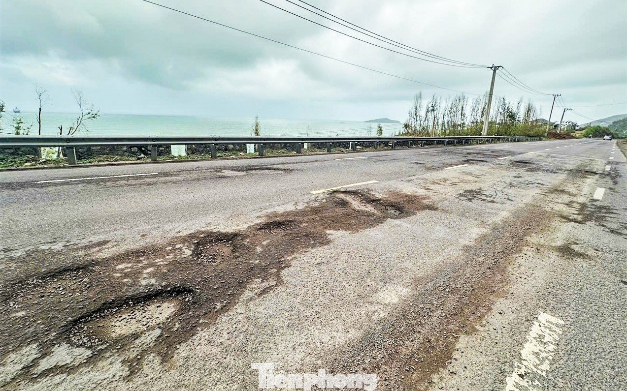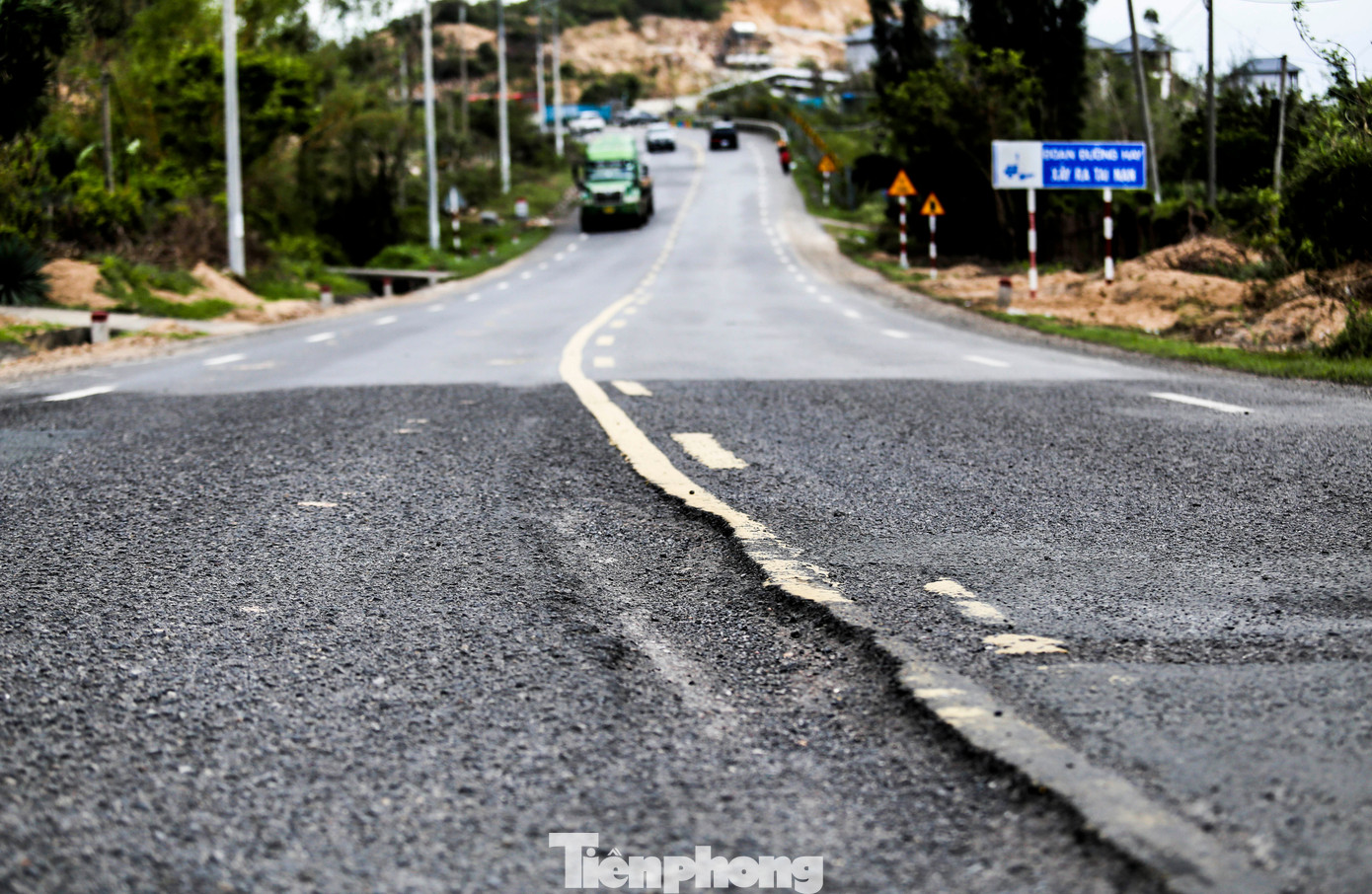 Quốc lộ 1D là tuyến đường có mật độ phương tiện lớn, sự hư hỏng xuất hiện dày đặc đang đặt ra mối lo ngại lớn về an toàn giao thông. Ảnh: Trương Định.