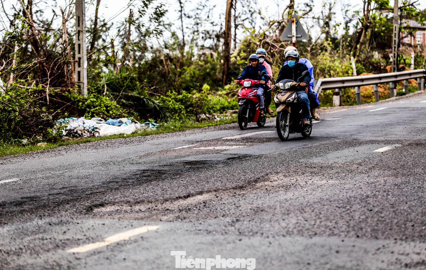 Người tham gia giao thông qua các đoạn đường bị xuống cấp nghiêm trọng. Ảnh: Trương Định.