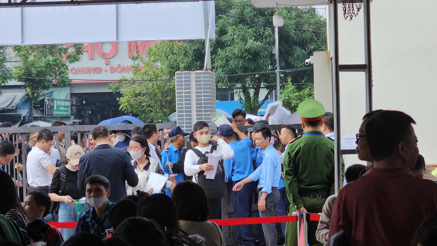Tiếp đến người dân được hướng dẫn xếp hàng theo thứ tự tại khu vực chờ được chủ đầu tư bố trí sẵn.