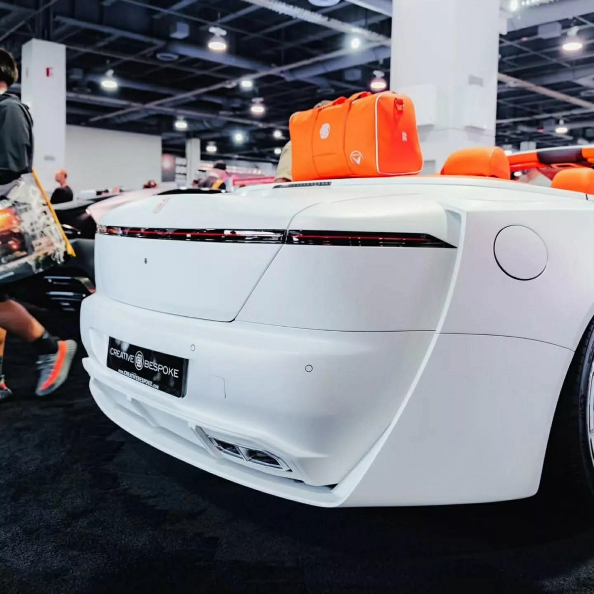 Venuum, một hãng độ đến từ Dubai, đã đưa gói độ widebody kit mới lên chiếc Rolls-Royce Dawn convertible để tạo nên diện mạo hoàn toàn khác biệt so với nguyên bản sang trọng của xe. Thay vì giữ lại kiểu dáng thanh lịch vốn có, gói độ này loại bỏ lưới tản nhiệt chrome đặc trưng và thay bằng mảng nhựa màu trắng với các lỗ tam giác hình học, tạo vẻ ngoài gây ấn tượng mạnh khi nhìn từ phía trước.