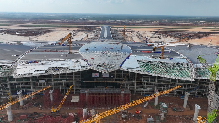 Tháng 8-2025, nhà ga hành khách sân bay Long Thành đã hoàn thành lắp đặt kết cấu thép mái chính và các khu vực mái che. Phần mái đã hoàn thiện cơ bản các lớp mái khu cánh trong 9-2025.