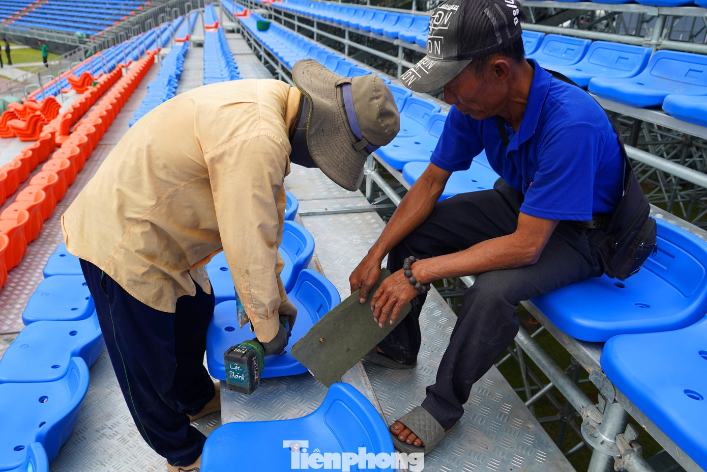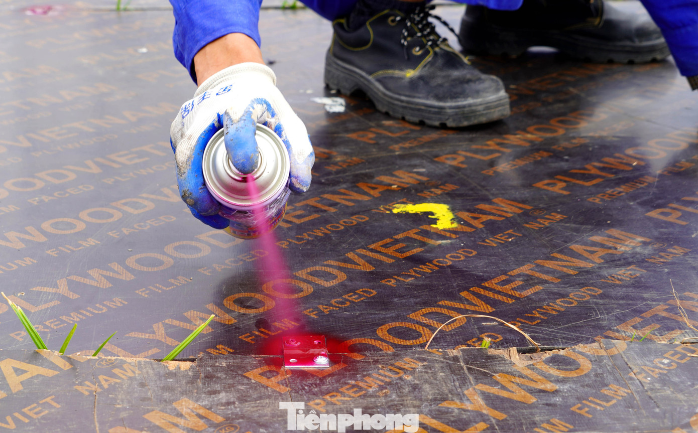 Công nhân đang gấp rút thi công hạng mục trước khi được nghiệm thu.