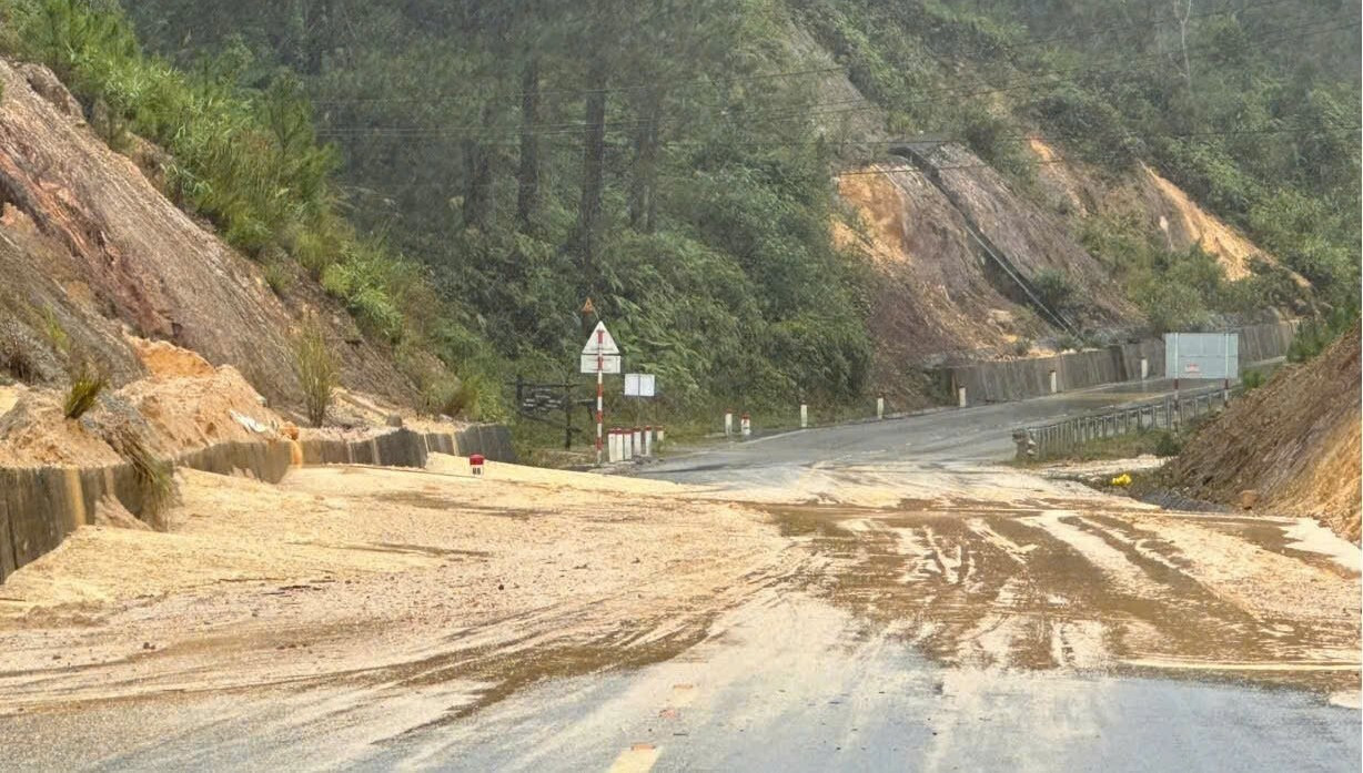 Cụ thể, trên Quốc lộ 24, đoạn từ Km76+900 đến Km76+960 (thuộc địa phận xã Kon Plong, tỉnh Quảng Ngãi), mưa lớn gây sụt lún taluy âm kéo 1/2 mặt đường. Chiều dài khoảng 60m, bề rộng vết nứt từ 15cm-30cm, chiều sâu xuống nền đường khoảng 15cm-60cm.