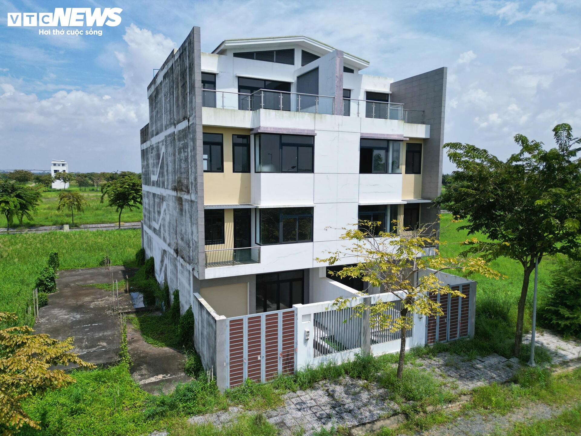 Bên trong dự án, các dãy nhà phố và biệt thự liền kề đã hoàn thiện phần thô, cao 3 - 4 tầng, nhưng phần lớn vẫn bỏ trống, cửa đóng im lìm.
