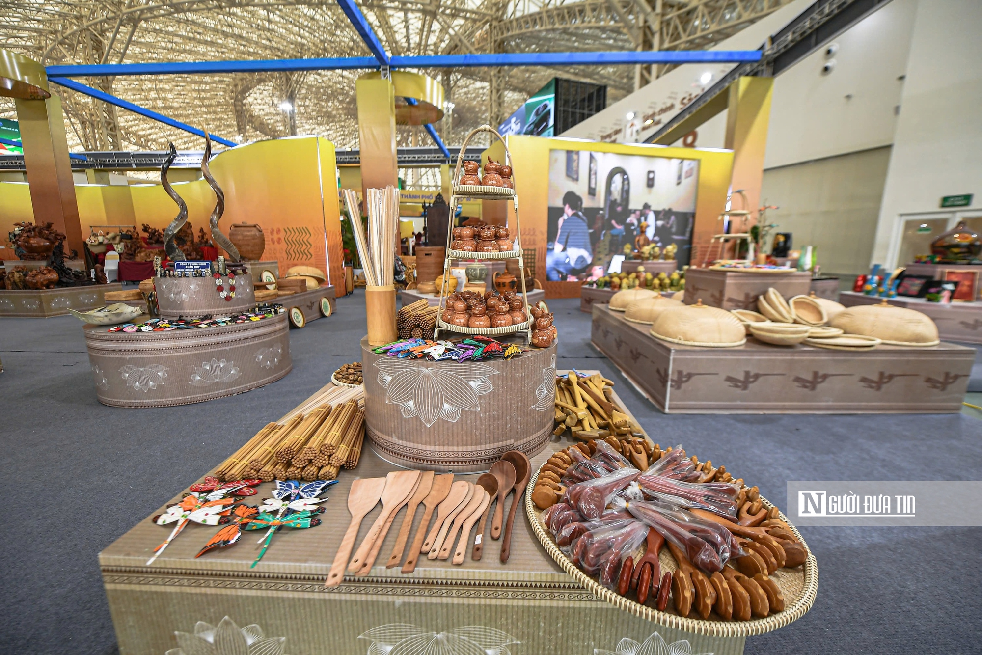 Khu trưng bày sản phẩm thủ công mỹ nghệ với nhiều mặt hàng tinh xảo, thể hiện bàn tay khéo léo của nghệ nhân Việt.