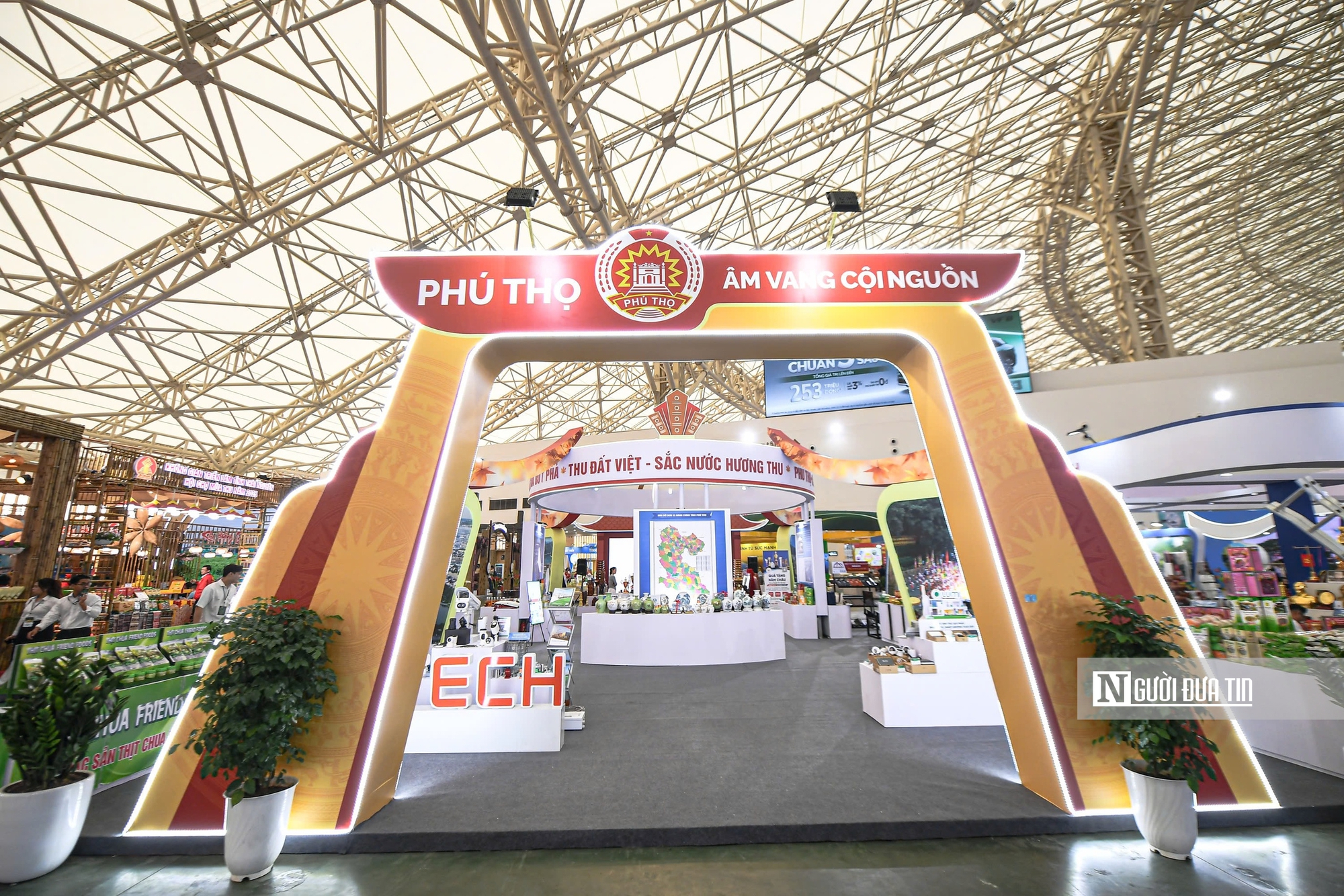Gian hàng Phú Thọ với chủ đề “Âm vang cội nguồn” mang đến sắc màu đặc trưng của vùng Đất Tổ, từ sản phẩm thủ công đến không gian trưng bày lễ hội.