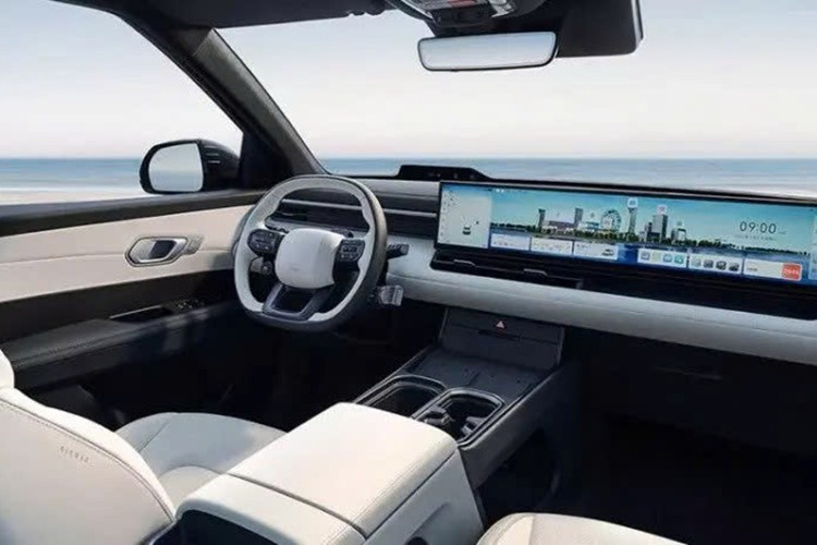 Bên trong SUV điện Hyundai Elexio 2026 là một không gian công nghệ tiên tiến. Màn hình siêu mỏng 4K 27 inch, chạy chip Snapdragon 8295 của Qualcomm, chiếm trọn bảng điều khiển, hai bên là màn hình hiển thị thông tin trên kính chắn gió “Cyber Eye” với tỷ lệ tương phản 30.000:1 một con số nghe như âm thanh từ màn hình chơi game hơn là từ xe hơi.