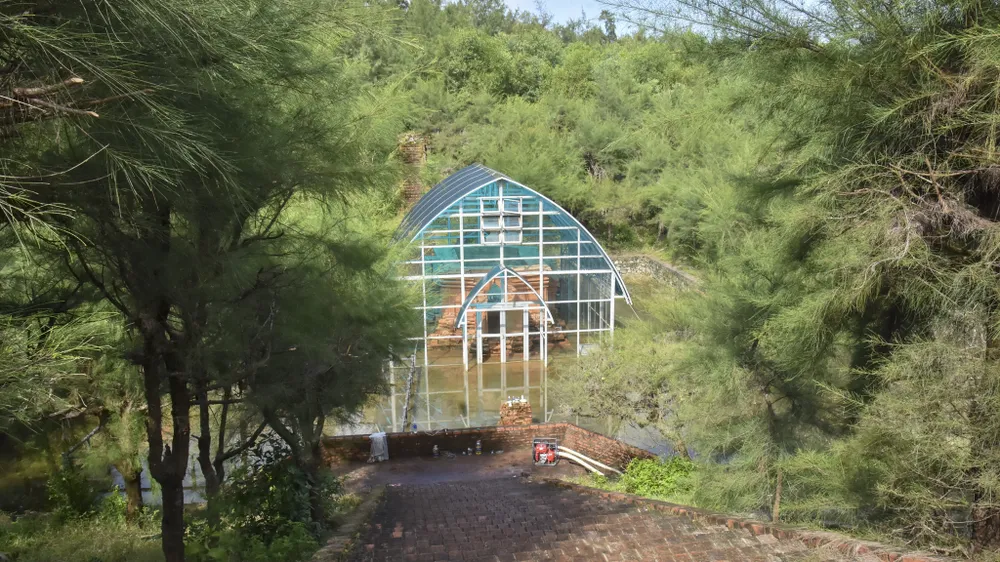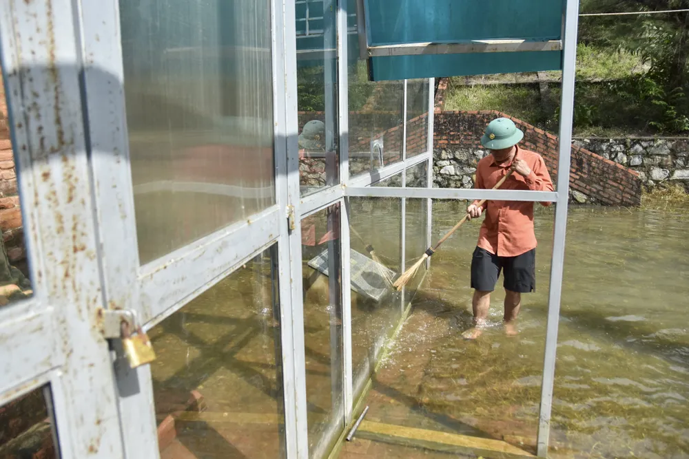 Phía bên trong nhà kính, nước vẫn còn bủa vây. Ảnh: N.DO