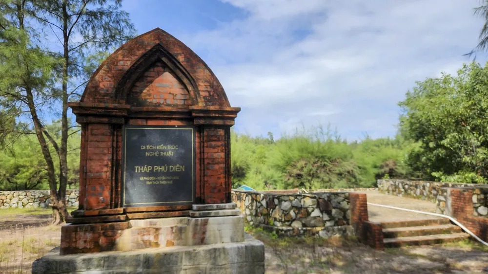 Tháp Phú Diên được phát hiện năm 2001 trong tình trạng nằm sâu trong cát, thấp hơn mực nước biển và cách mép nước biển hơn 100m. Vào tháng 12-2001, Tháp Chăm Phú Diên được Bộ Văn Hóa - Thông tin (nay là Bộ Văn hóa - Thể thao và Du lịch) xếp hàng là di tích Kiến trúc Nghệ thuật cấp Quốc gia. Ảnh: N.DO