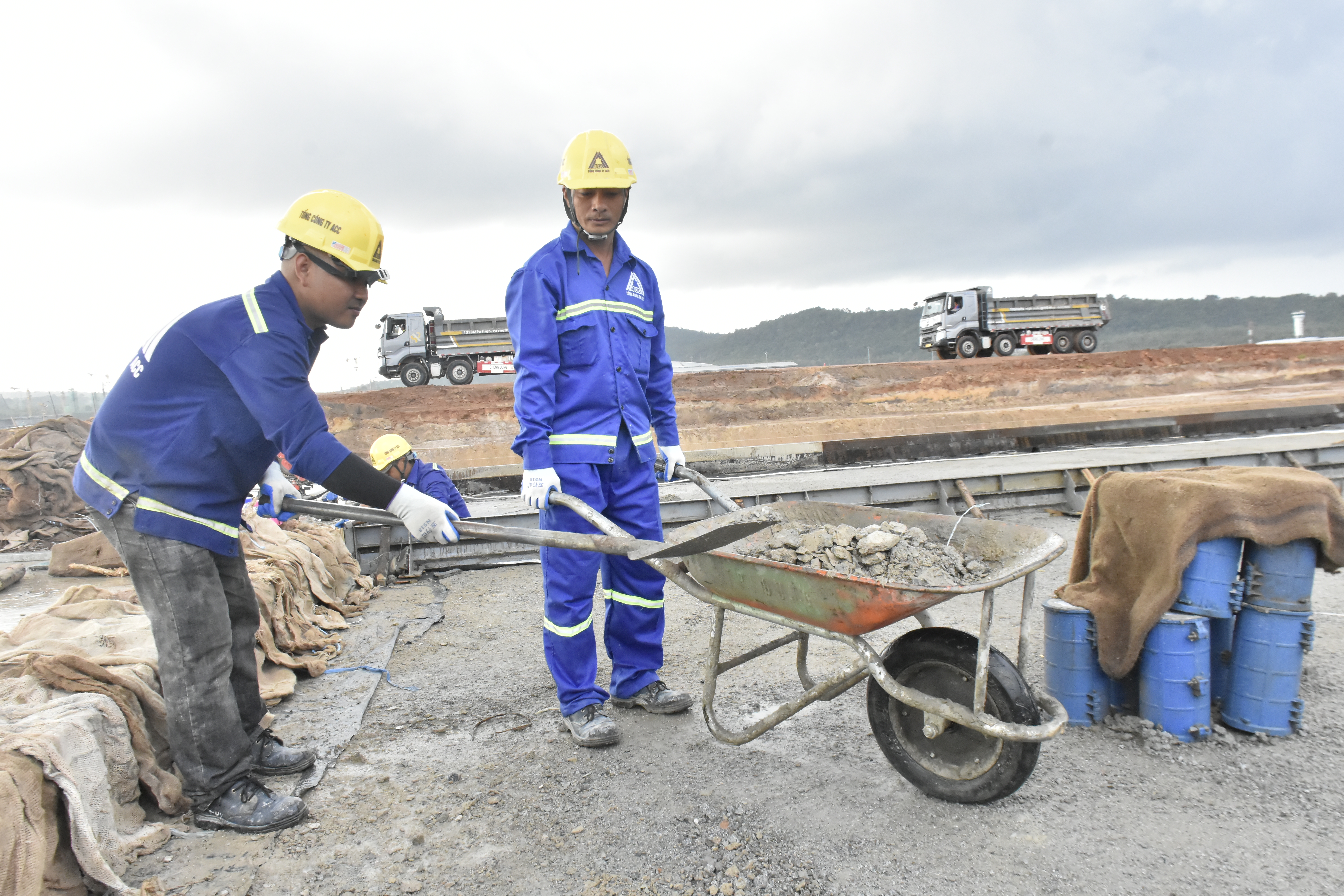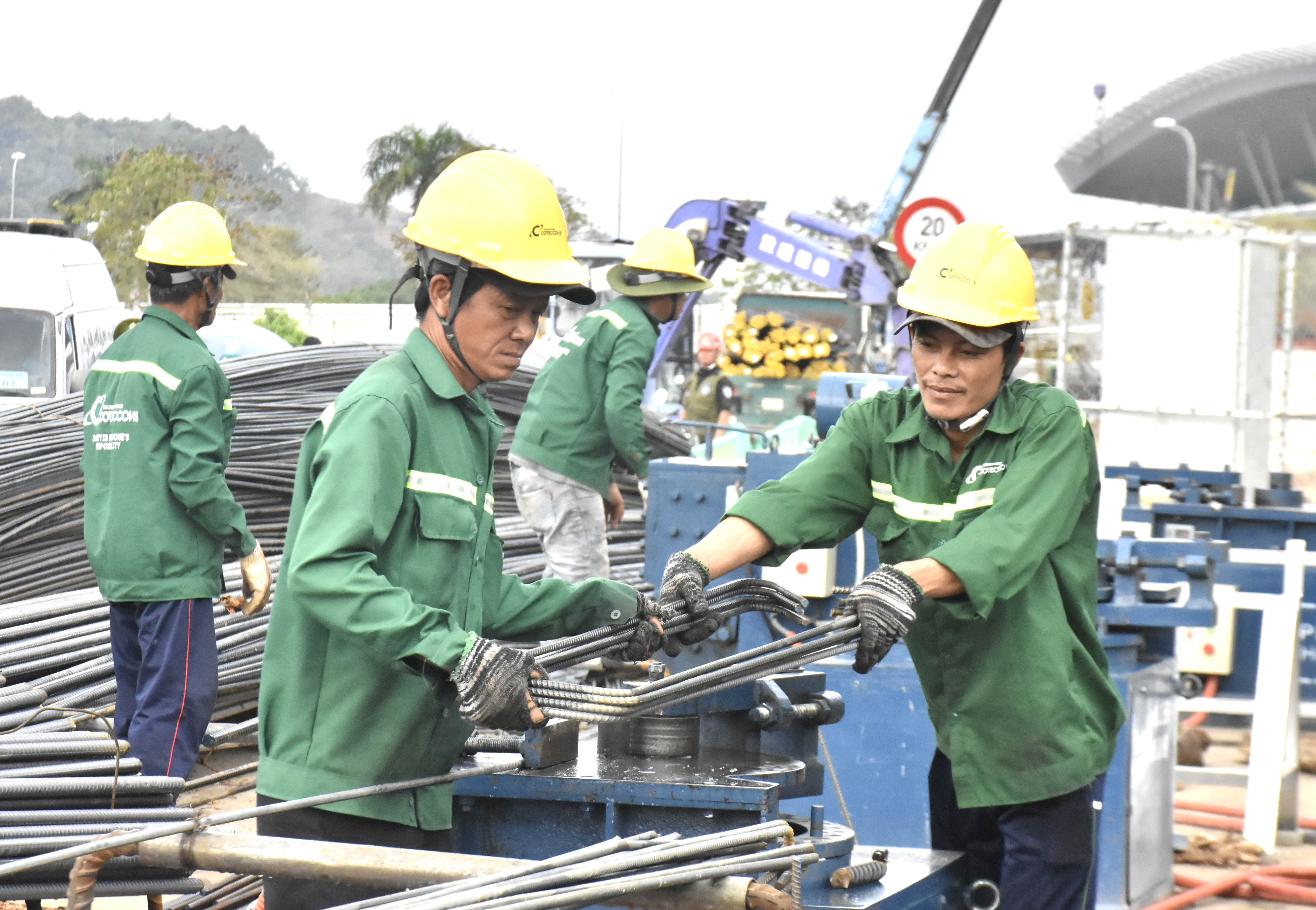 Không khí lao động khẩn trương trên công trường phản ánh quyết tâm của các đơn vị thi công trong việc đưa dự án về đích đúng kế hoạch.