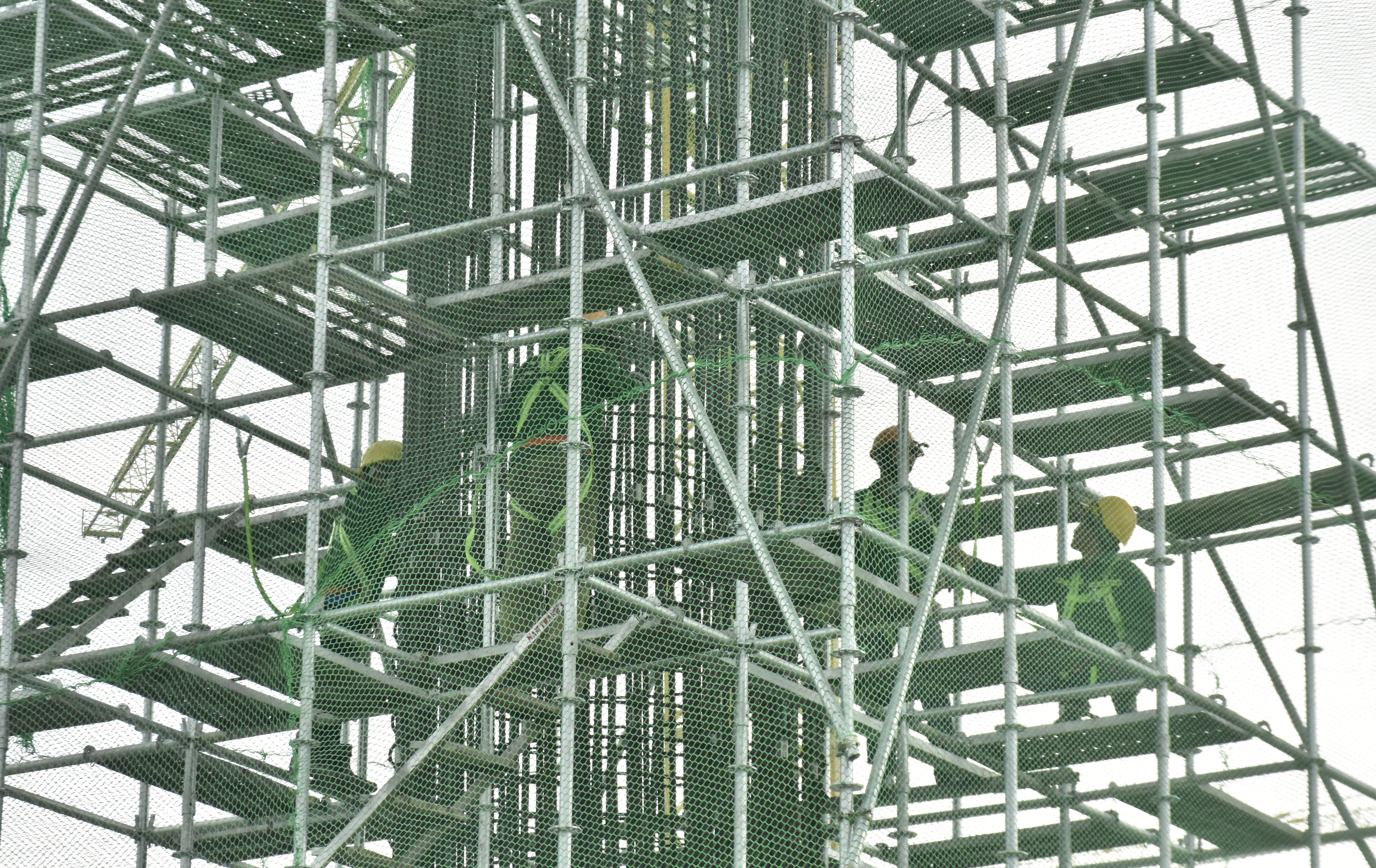 Công nhân gia công cốt thép trên công trường Nhà ga T2 (dự án đầu tư mở rộng Cảng hàng không quốc tế Phú Quốc)