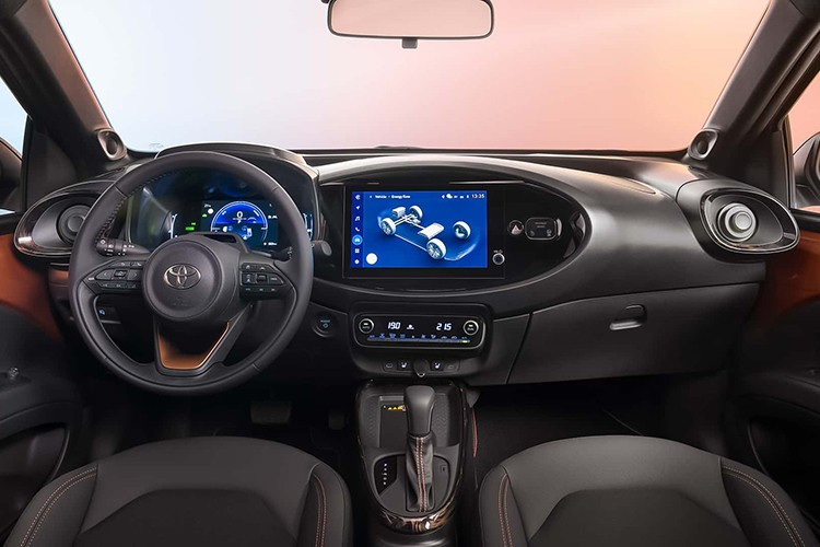 Cao cấp hơn Toyota Aygo X Icon 2026 là phiên bản Design, có giá khởi điểm từ 23.695 bảng Anh (31.140 USD - hơn 814 triệu đồng). Phiên bản này được trang bị mâm xe hợp kim 18 inch lớn hơn, đèn pha LED, gương chiếu hậu tự động gập điện có chức năng sưởi và nút bấm khởi động.