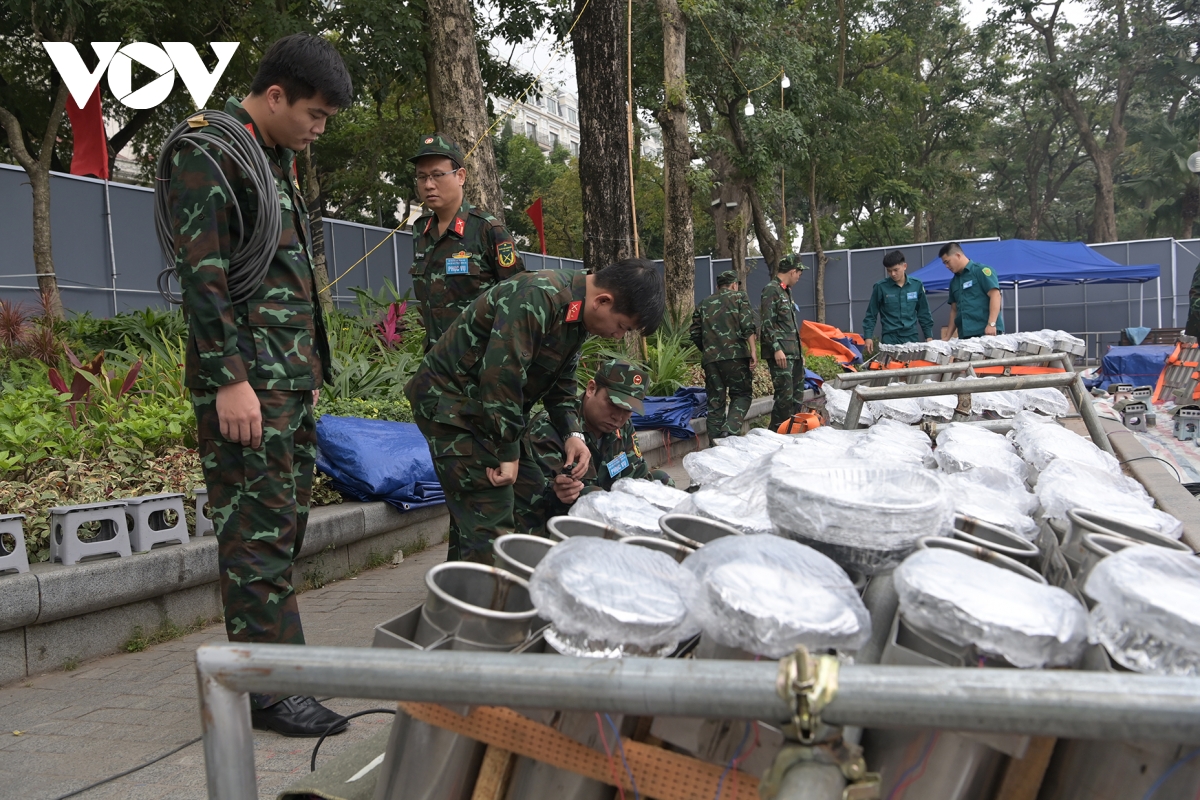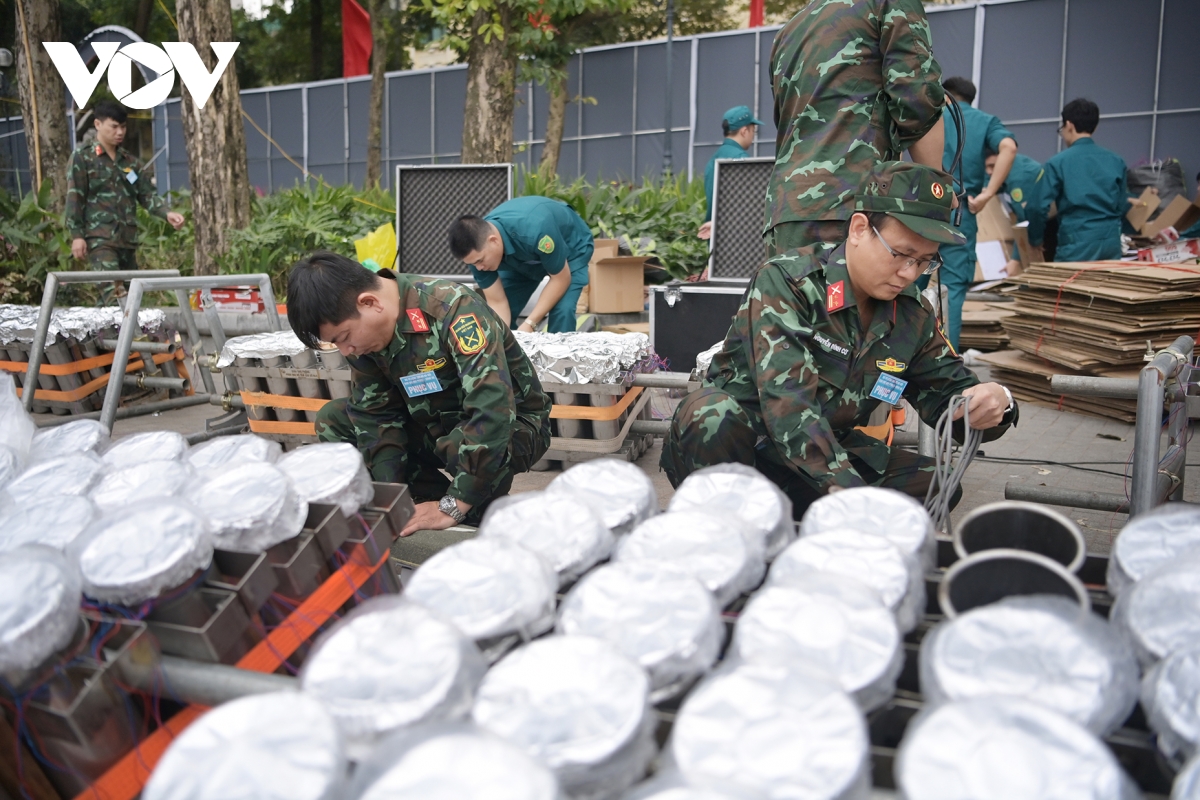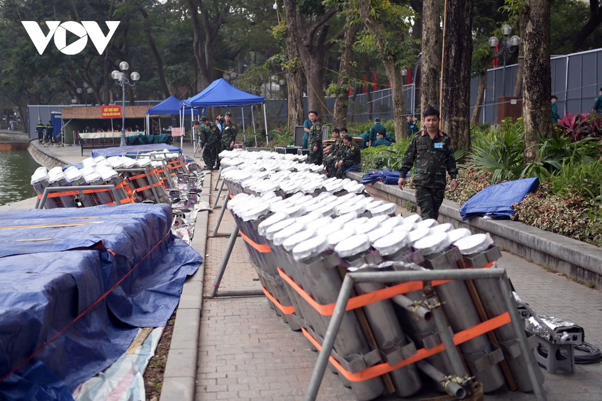 Hệ thống pháo hoa sẵn sàng thắp sáng bầu trời Hà Nội trong khoảnh khắc giao thừa.