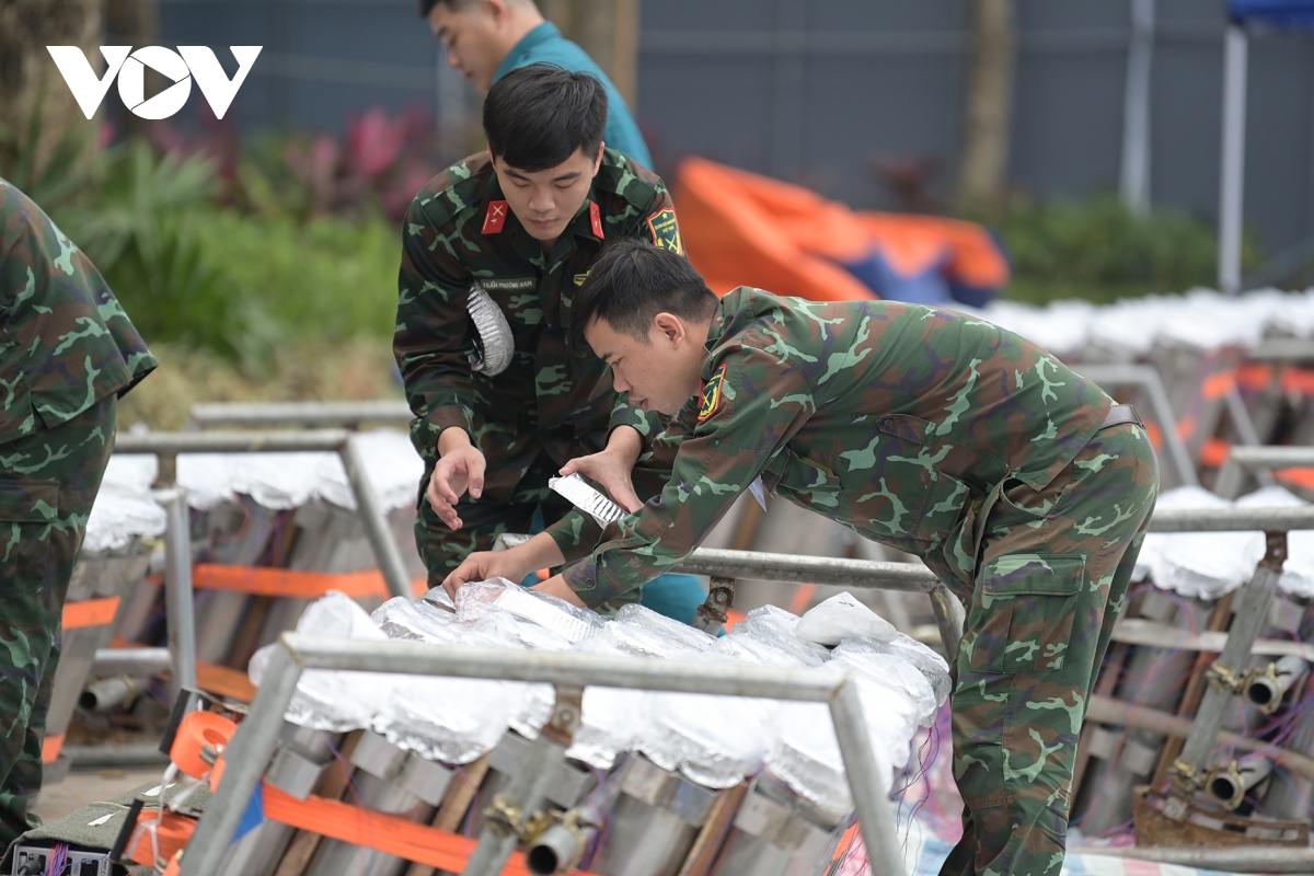 Lực lượng kỹ thuật kiểm tra hệ thống pháo hoa trước giờ G.