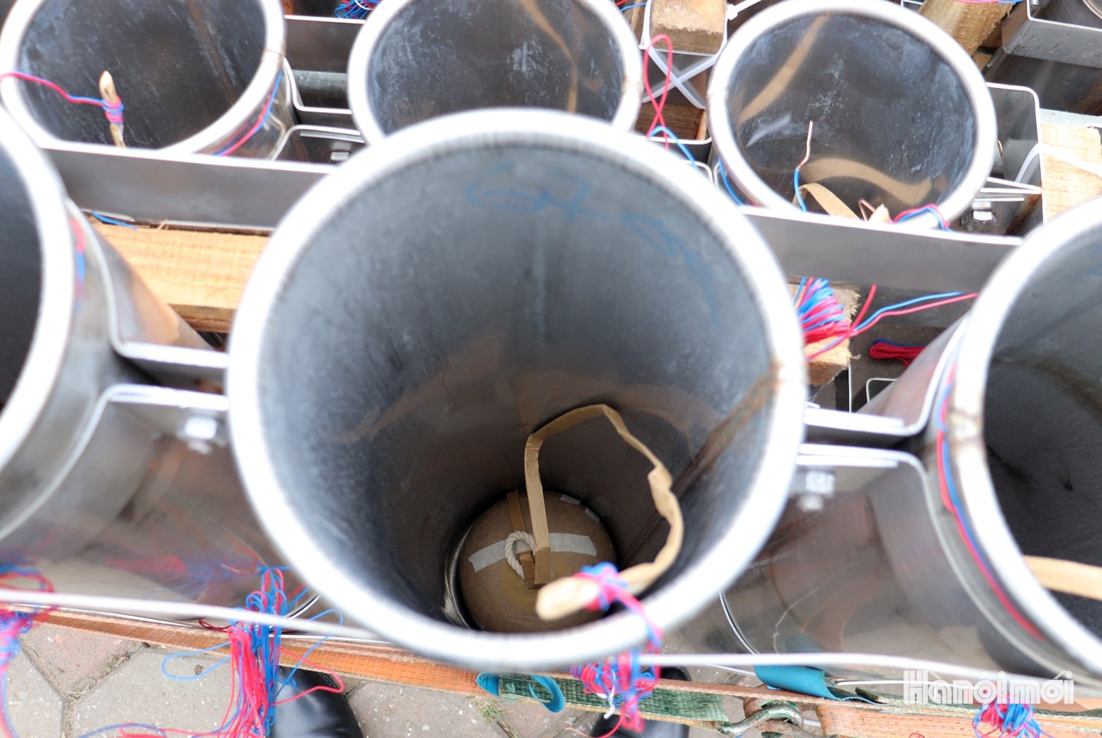60 giàn pháo hoa tầm thấp đã được xếp vào vị trí bắn. Ảnh: Tuấn Điệp