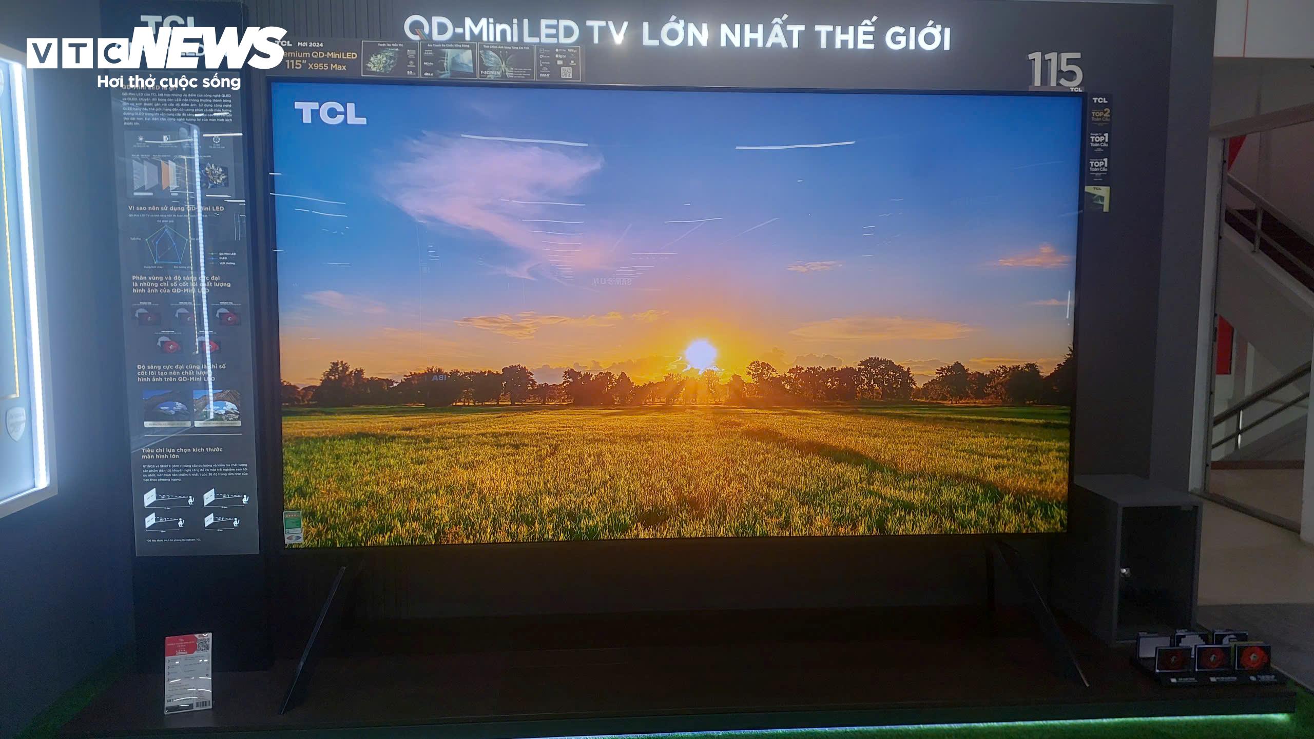 Ở phân khúc giá ''mềm" hơn, hãng TCL có sản phẩm TV Miniled 4k 115 inch, hiện được niêm yết với giá hơn 687 triệu đồng. Đây là mẫu tivi được trang bị công nghệ QD-Mini LED kết hợp Quantum Dot thế hệ 4, mang đến độ sáng tối đa 5.000 nits và hơn 20.000 vùng kiểm soát ánh sáng độc lập, giúp hình ảnh đạt độ tương phản sâu, màu sắc rực rỡ và độ chi tiết cao.