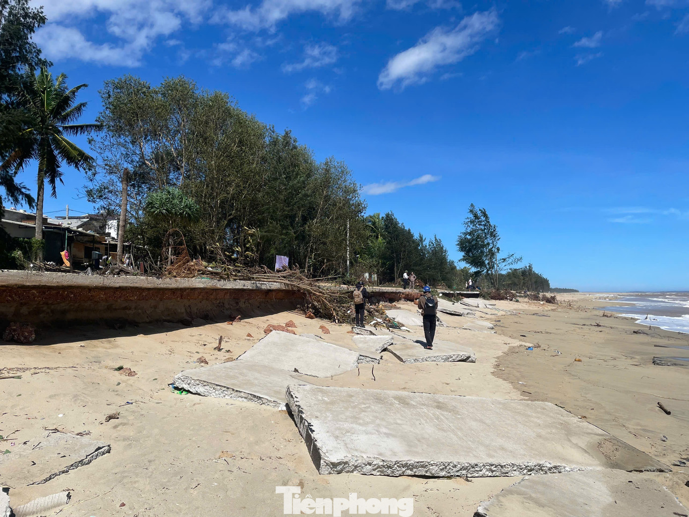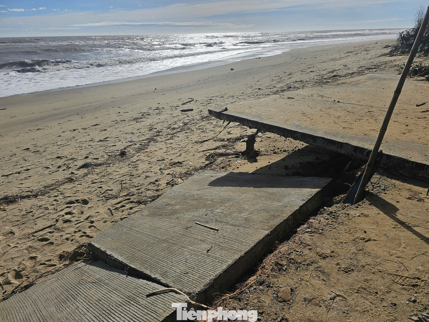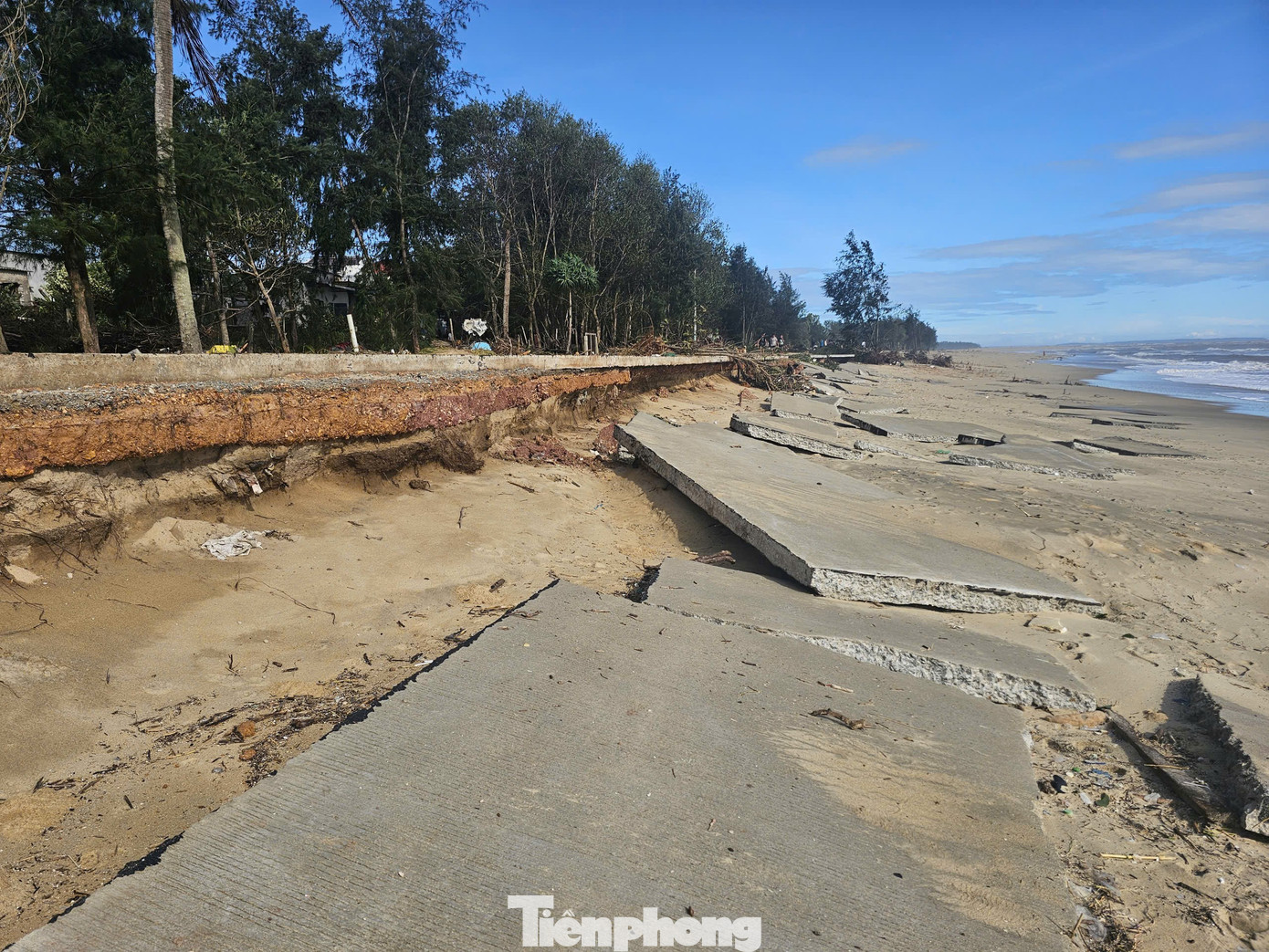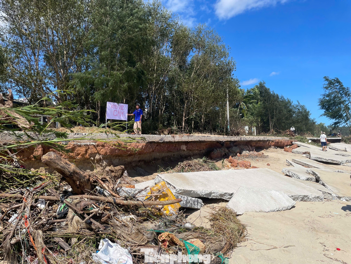 Theo nhiều người dân, con đường này chạy dọc bờ biển như tấm lá chắn sóng, nhưng sau bão số 13 hiện đã không còn nguyên vẹn. Chỉ thêm vài đợt triều cường nữa, nguy cơ xâm thực ăn sâu vào khu dân cư là rất lớn, đe dọa an toàn nhà cửa và đời sống người dân.
