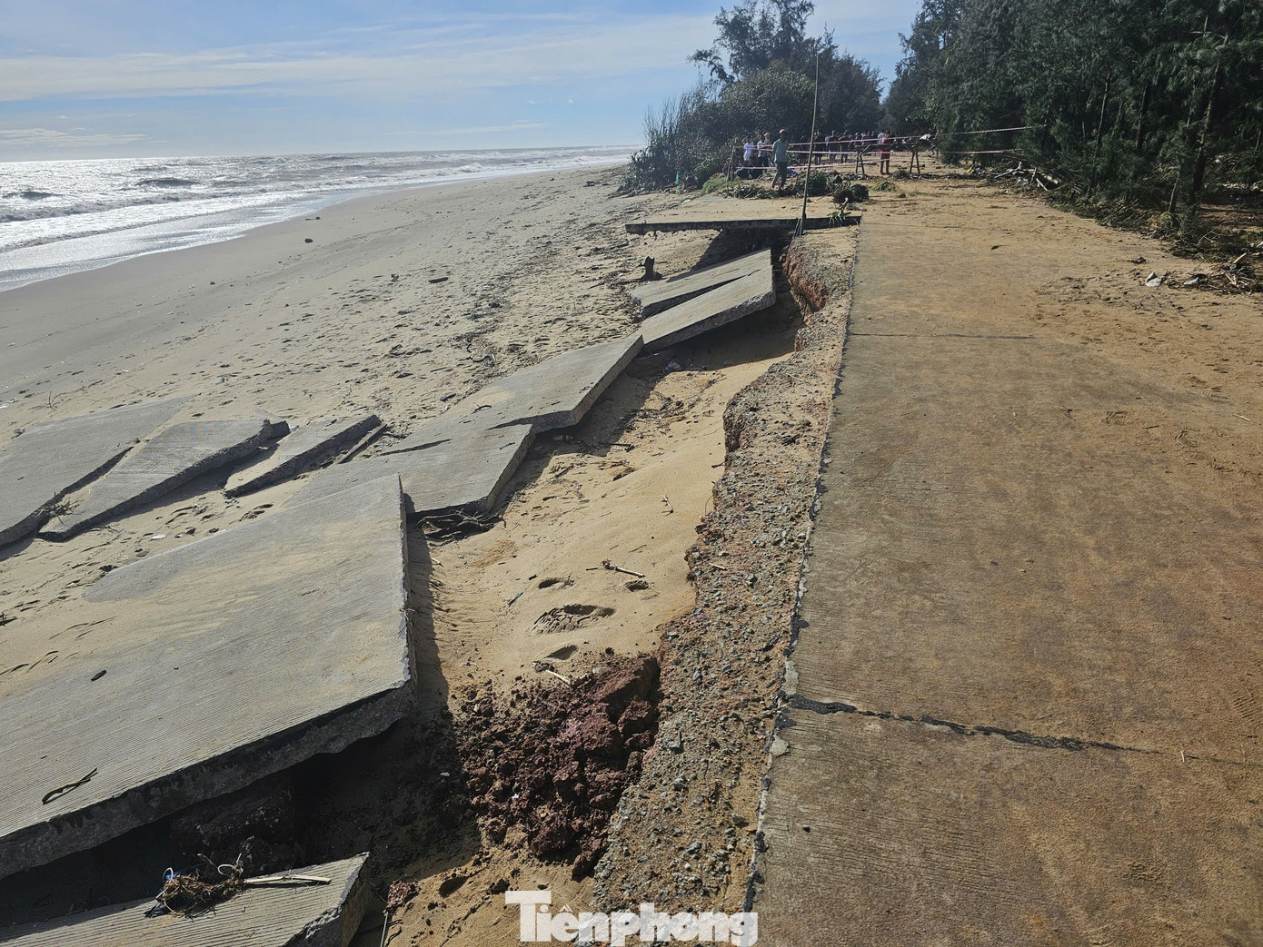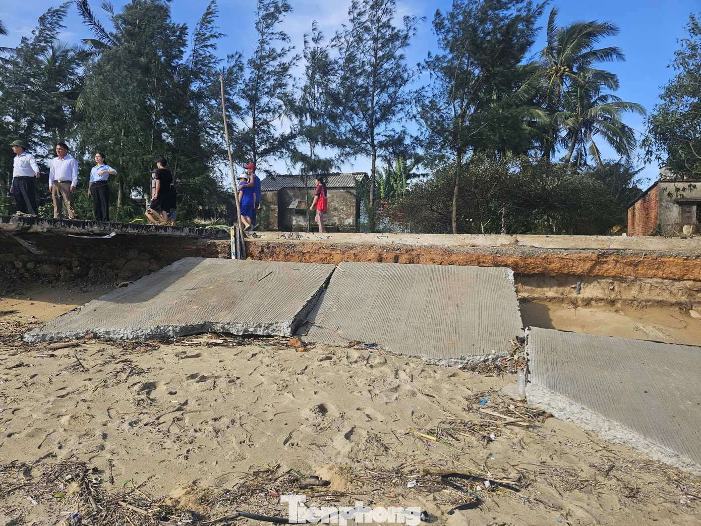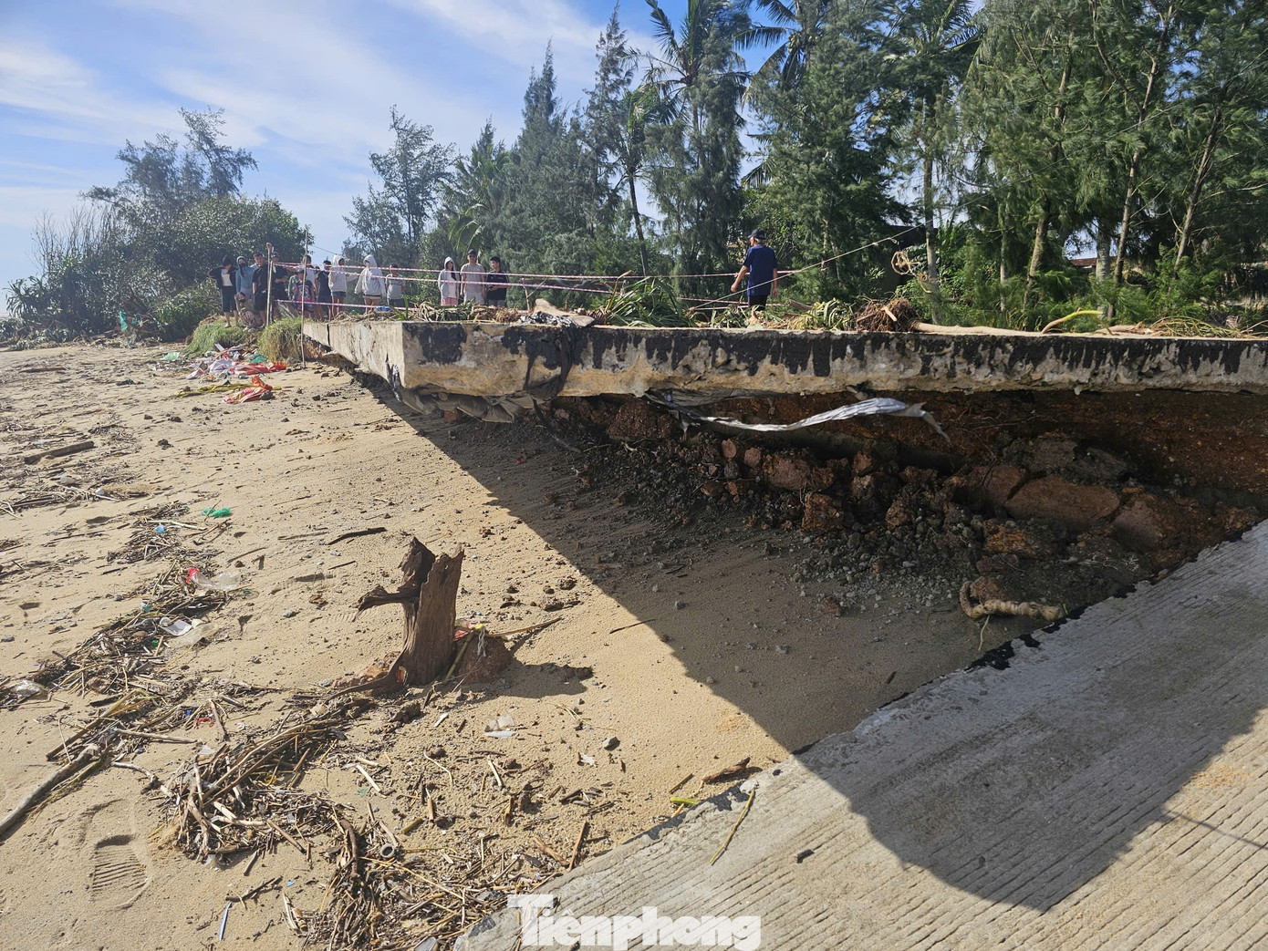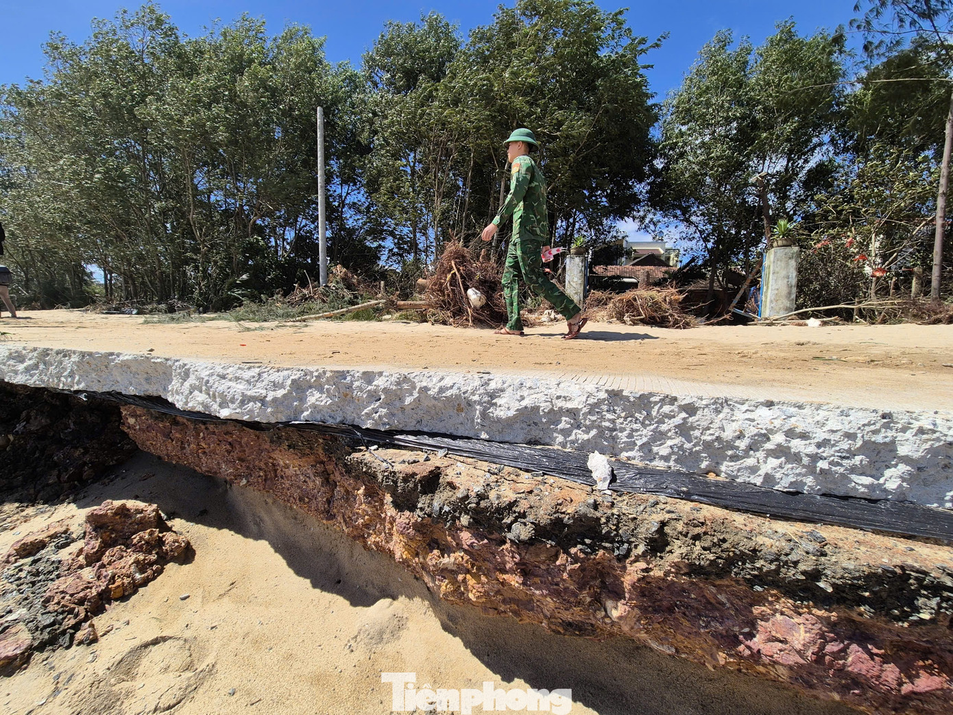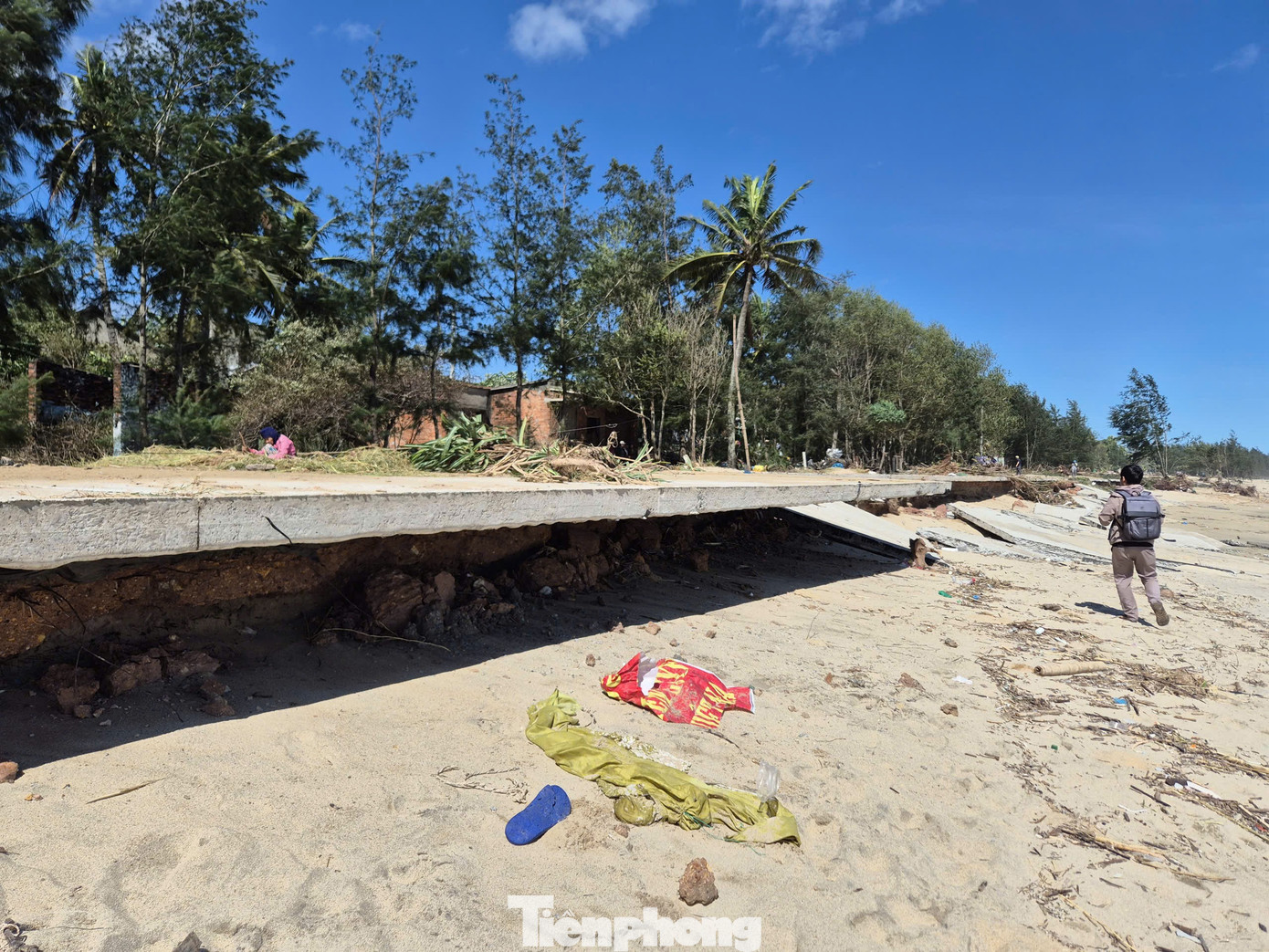 Theo nhiều người dân, con đường này chạy dọc bờ biển như tấm lá chắn sóng, nhưng sau bão số 13 hiện đã không còn nguyên vẹn. Chỉ thêm vài đợt triều cường nữa, nguy cơ xâm thực ăn sâu vào khu dân cư là rất lớn, đe dọa an toàn nhà cửa và đời sống người dân.