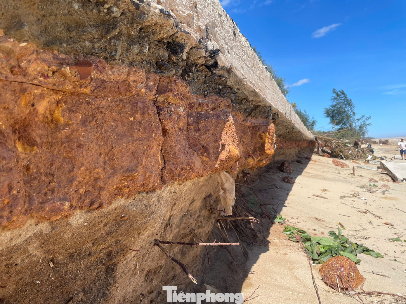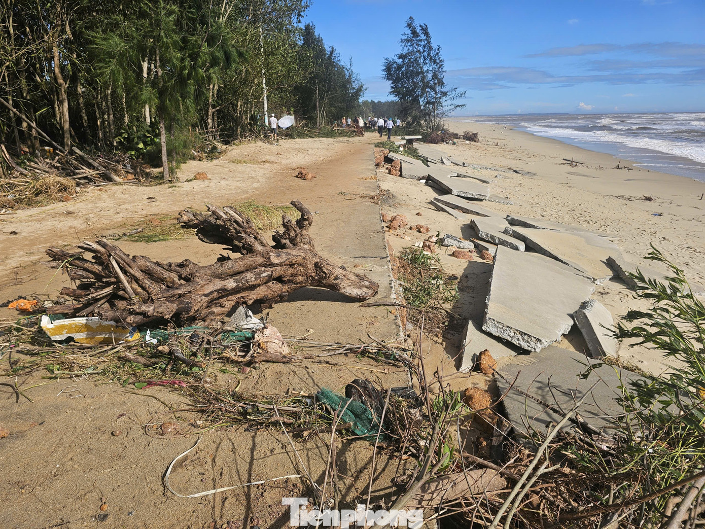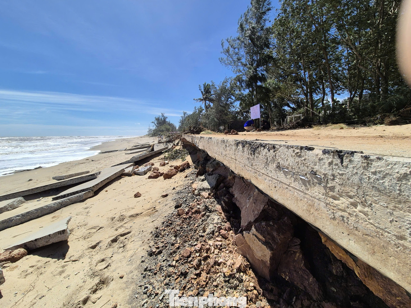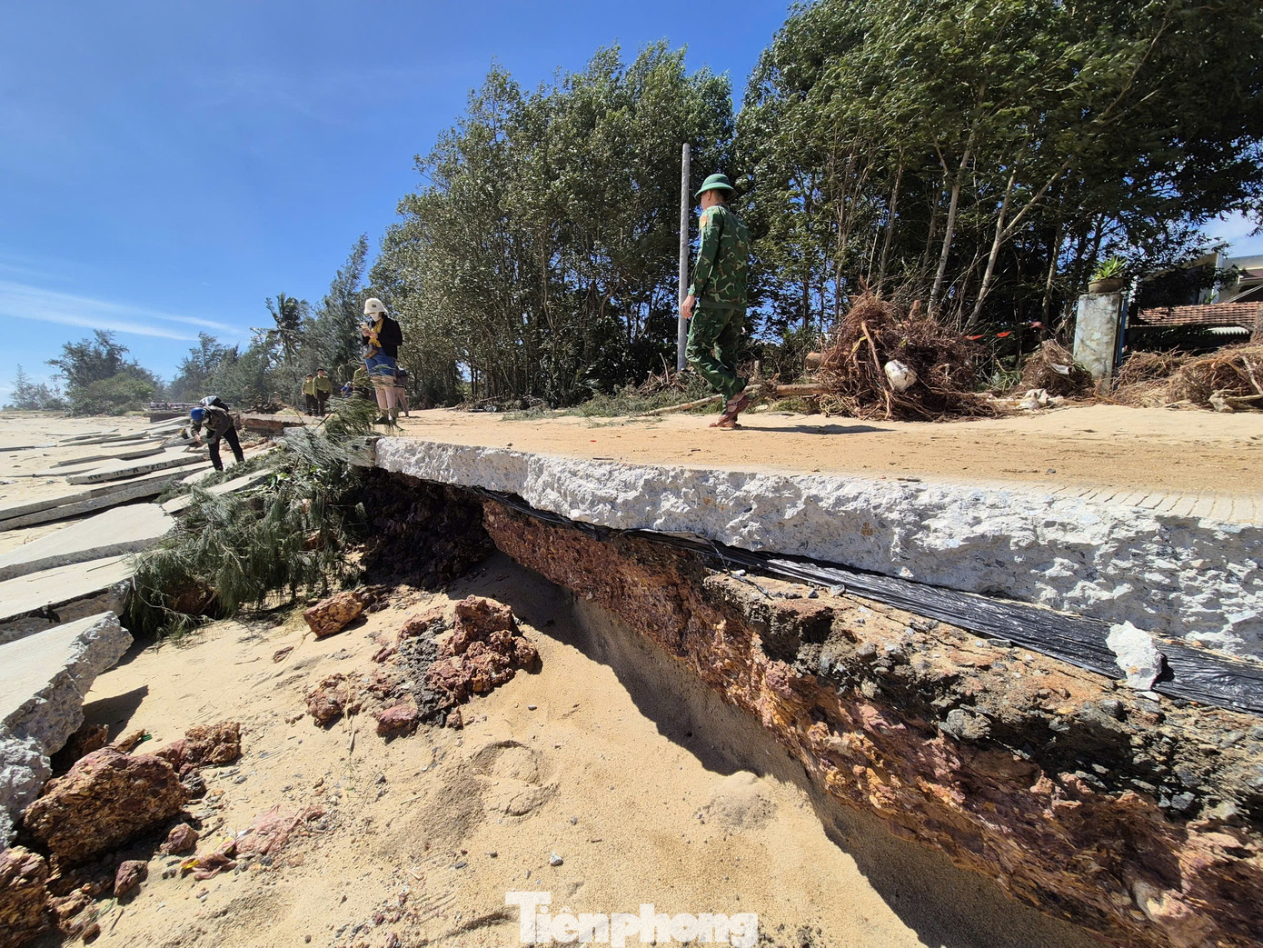 Theo nhiều người dân, con đường này chạy dọc bờ biển như tấm lá chắn sóng, nhưng sau bão số 13 hiện đã không còn nguyên vẹn. Chỉ thêm vài đợt triều cường nữa, nguy cơ xâm thực ăn sâu vào khu dân cư là rất lớn, đe dọa an toàn nhà cửa và đời sống người dân.