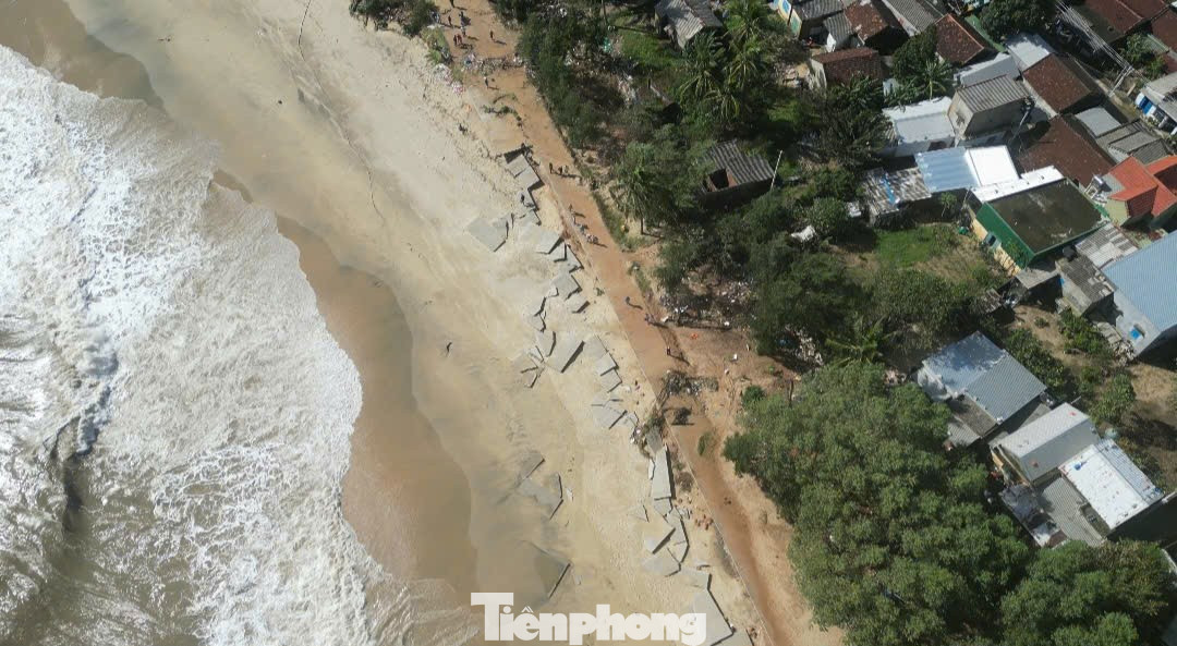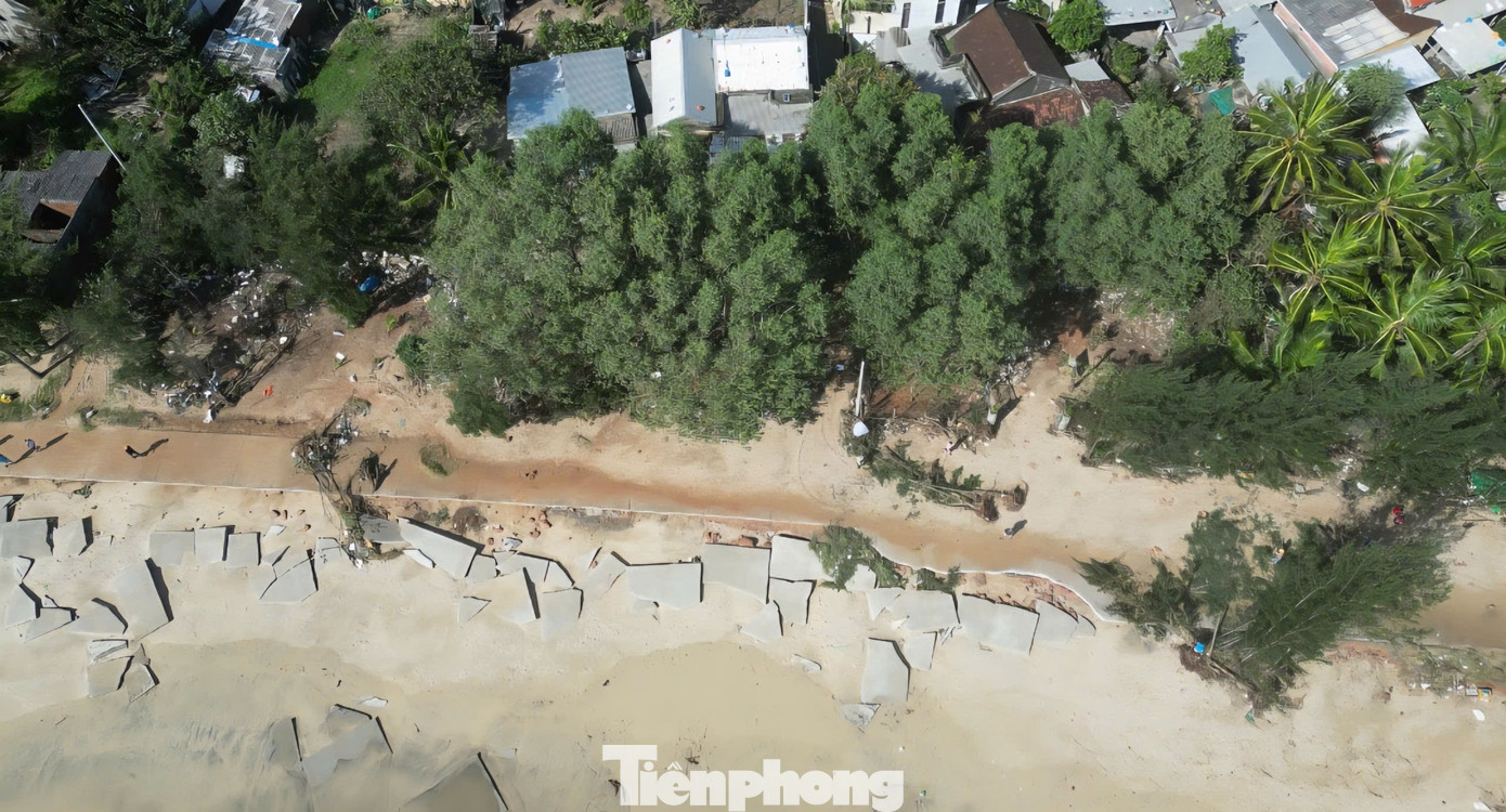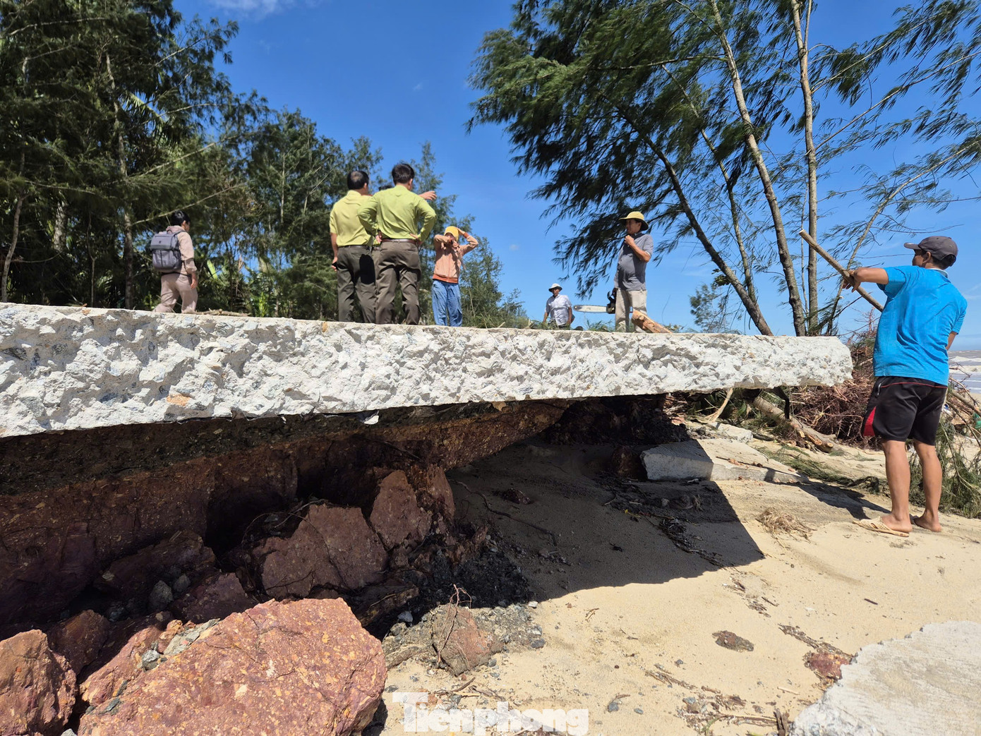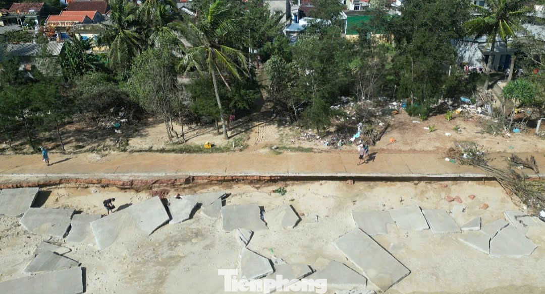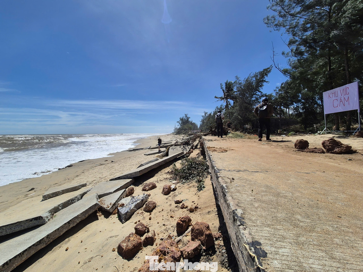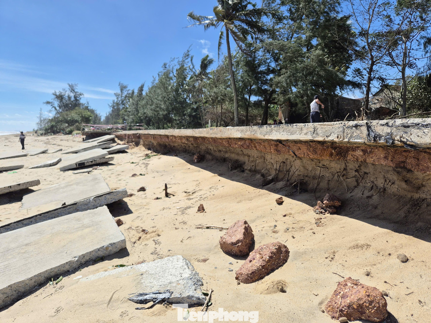 Theo nhiều người dân, con đường này chạy dọc bờ biển như tấm lá chắn sóng, nhưng sau bão số 13 hiện đã không còn nguyên vẹn. Chỉ thêm vài đợt triều cường nữa, nguy cơ xâm thực ăn sâu vào khu dân cư là rất lớn, đe dọa an toàn nhà cửa và đời sống người dân.