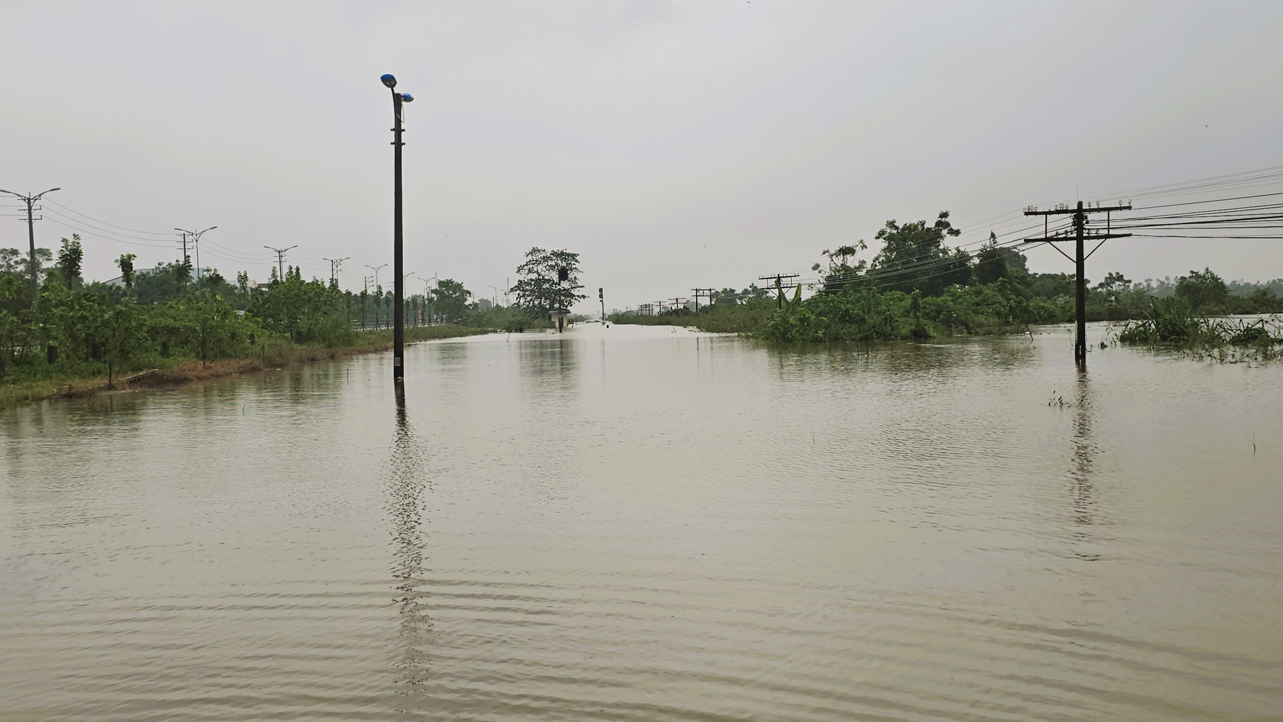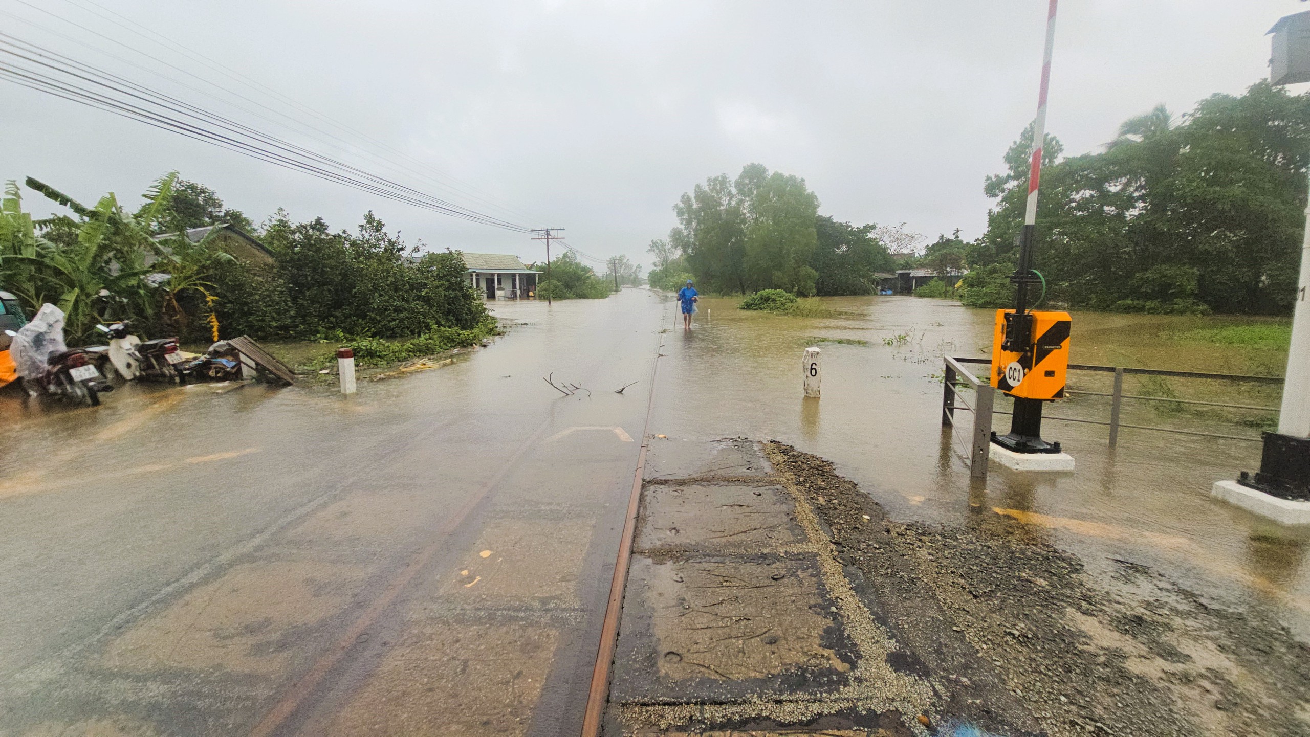 Trong đó, quốc lộ 1 đoạn từ Trường THPT Đặng Huy Trứ (phía Bắc cầu Quán Rớ) cũng như đường sắt Bắc - Nam qua đoạn này đang bị ngập sâu.