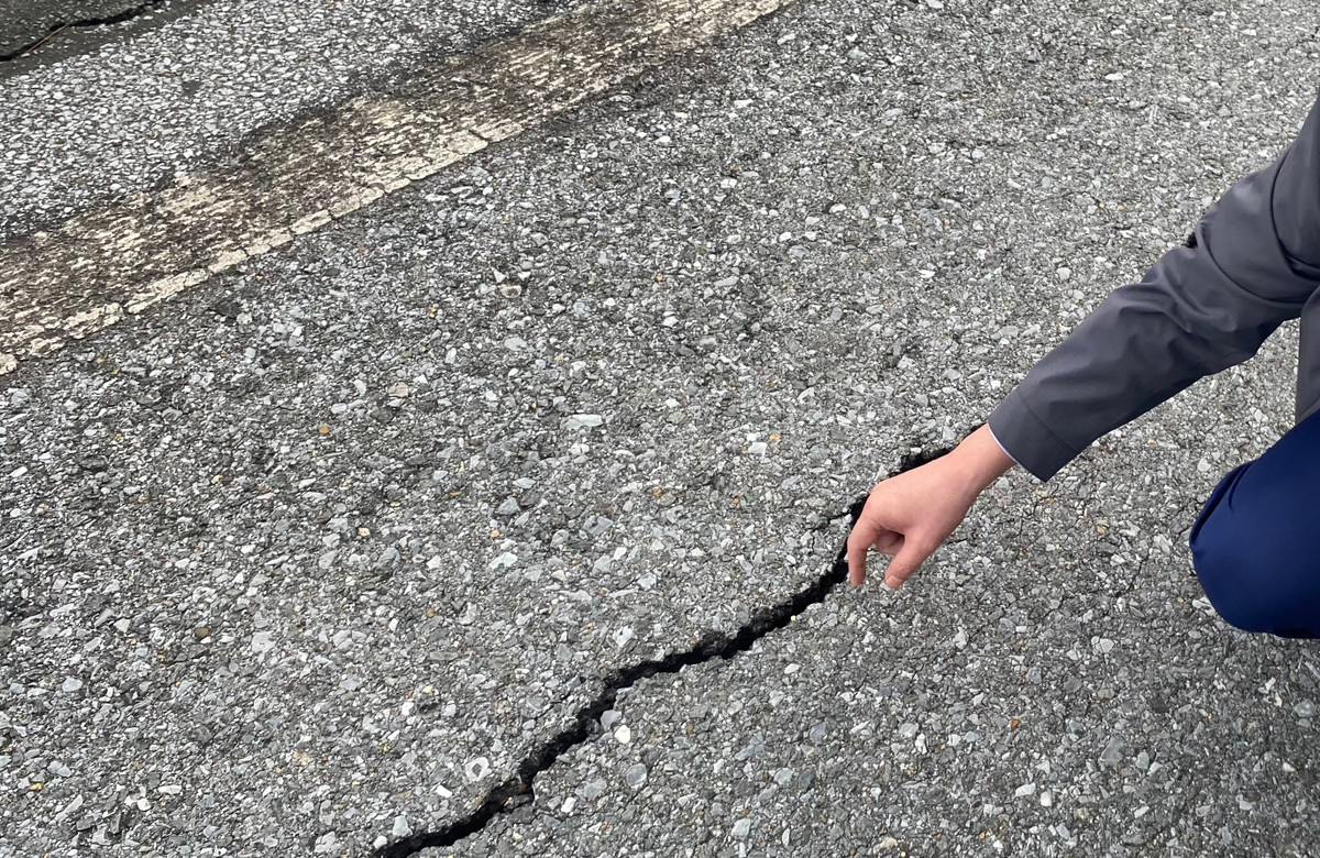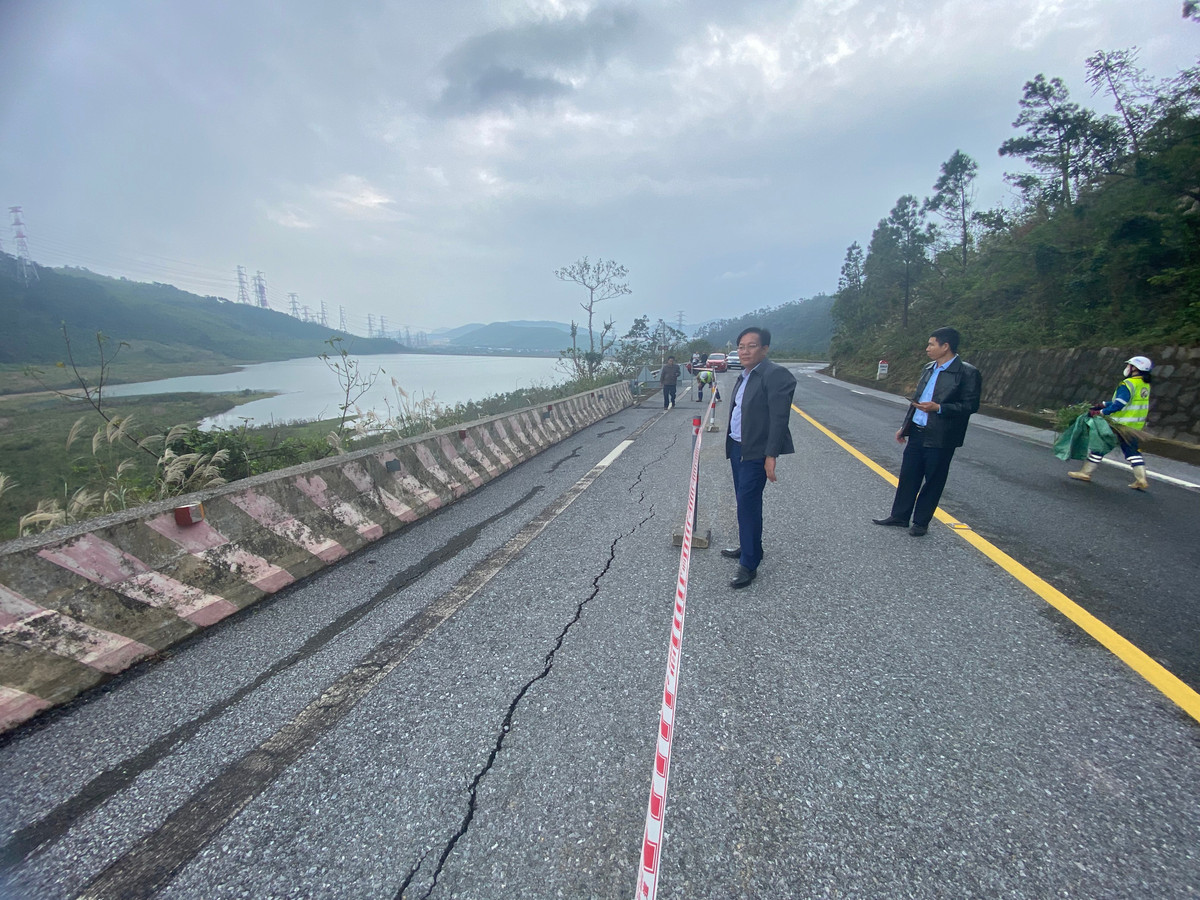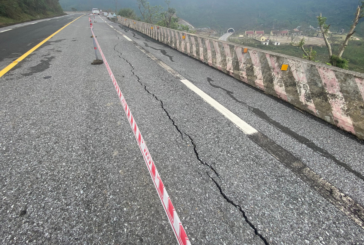 Vết nứt có bề ngang tầm 3cm kéo dài hàng chục mét, nằm phía bên phải ta luy âm của mặt đường theo hướng Quảng Trị đi Hà Tĩnh.