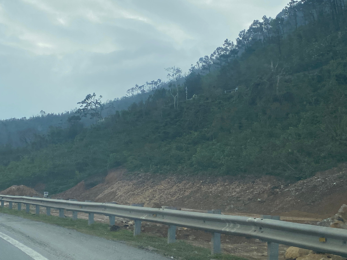 Tại hiện trường phía dưới vết nứt tuyến đường QL 1A đơn vị thi công hầm Đèo Ngang đang triển khai thi công các hạng mục liên quan. Hiện, nguyên nhân cụ thể đang đợi cơ quan chức năng có liên quan kiểm tra xác minh.