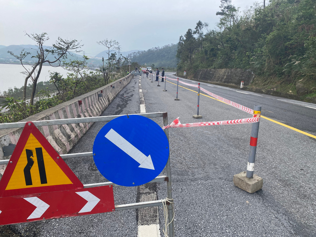 Vị trí vết nứt sớm được lực lượng chức năng cắm biển, căng dây cảnh báo nguy hiểm cho phương tiện qua lại.