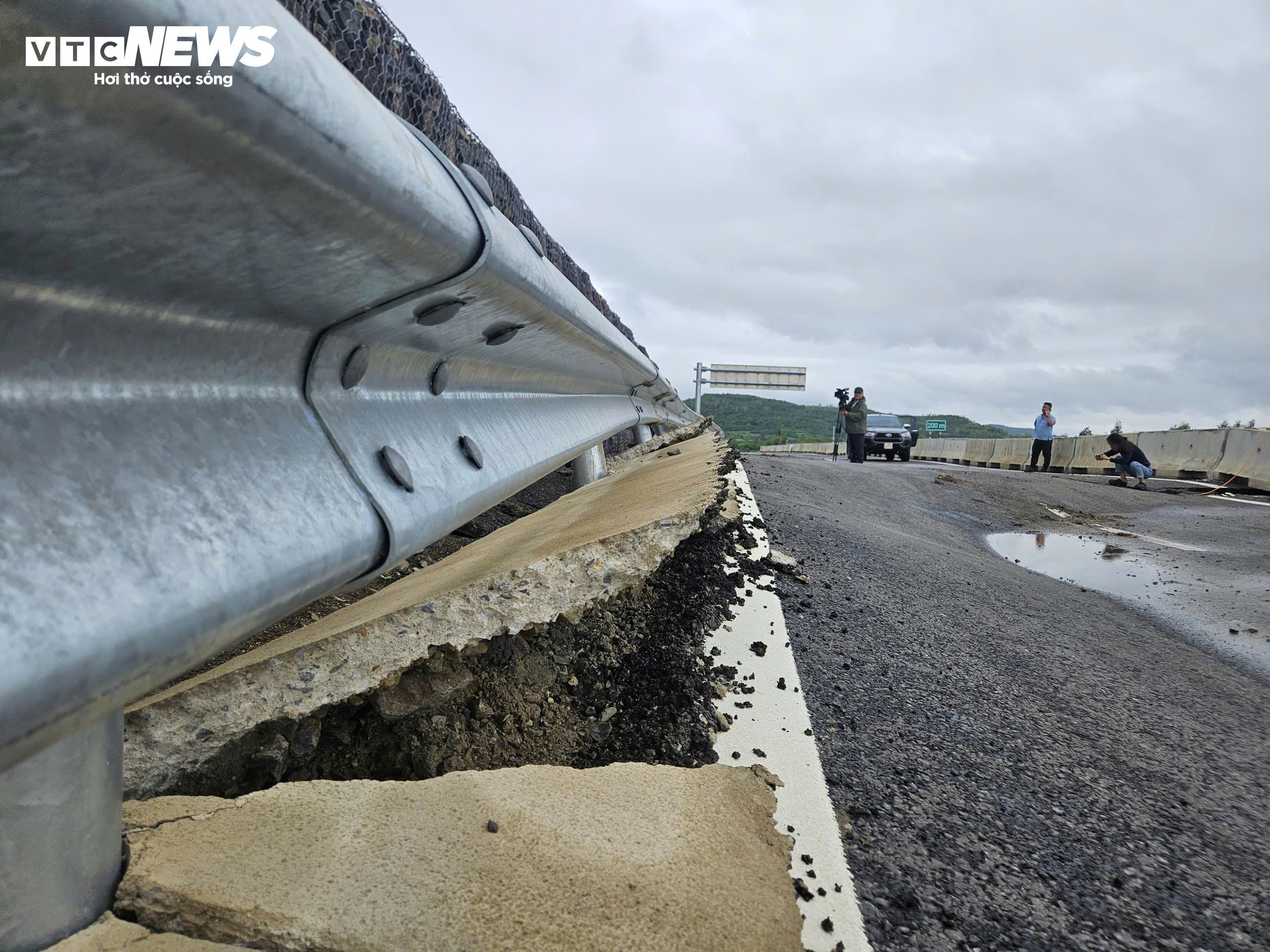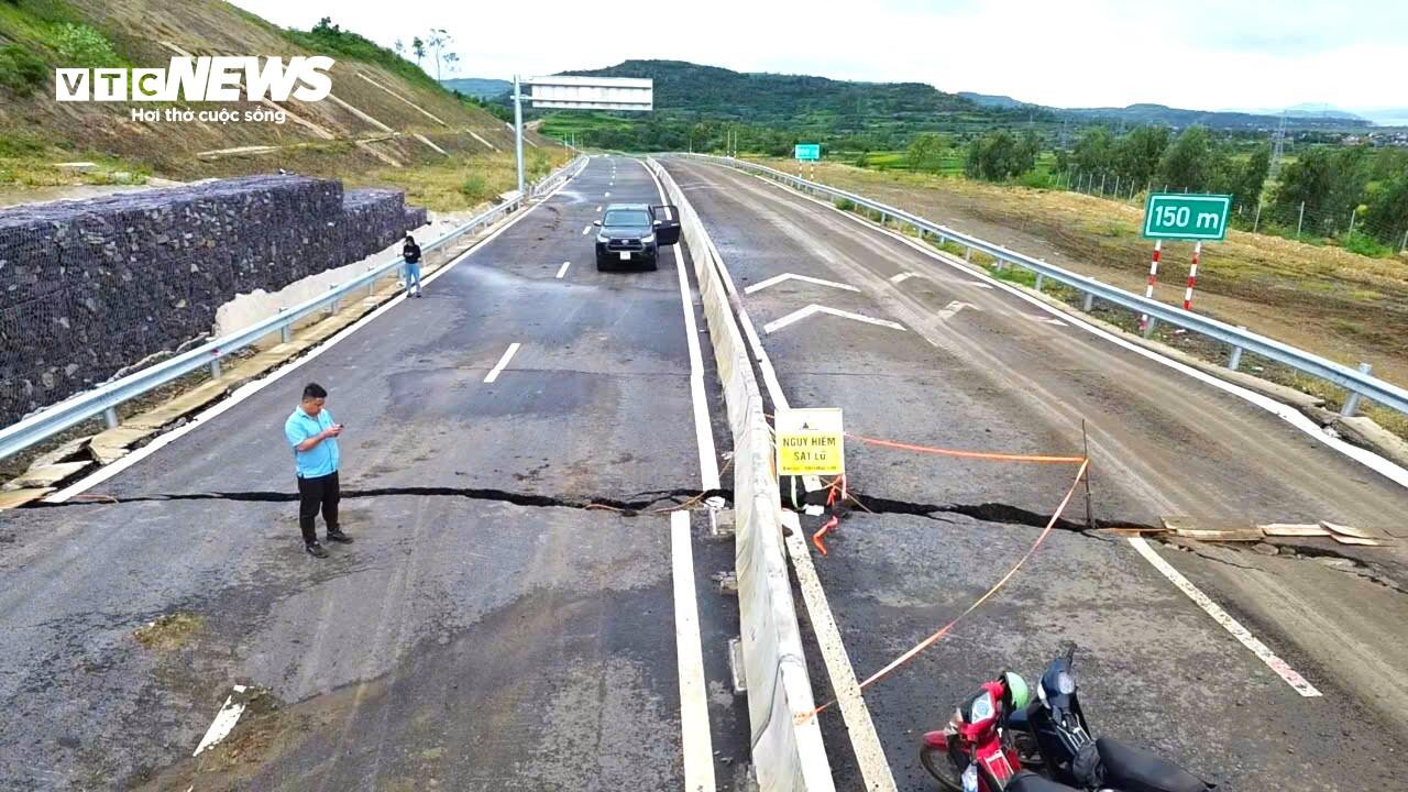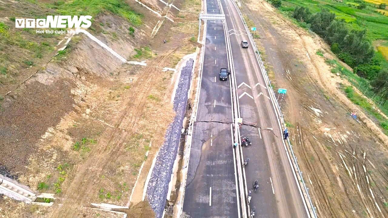 Ghi nhận tại hiện trường cho thấy, mặt đường cao tốc xuất hiện nhiều vết nứt lớn, kéo dài cắt ngang toàn bộ bề rộng tuyến.