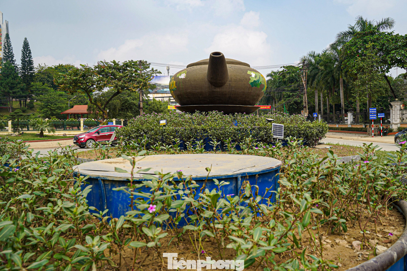 Nhiều người đi qua khu vực này tranh thủ check-in bên bộ ấm trà khổng lồ nay đã mất ba chén.