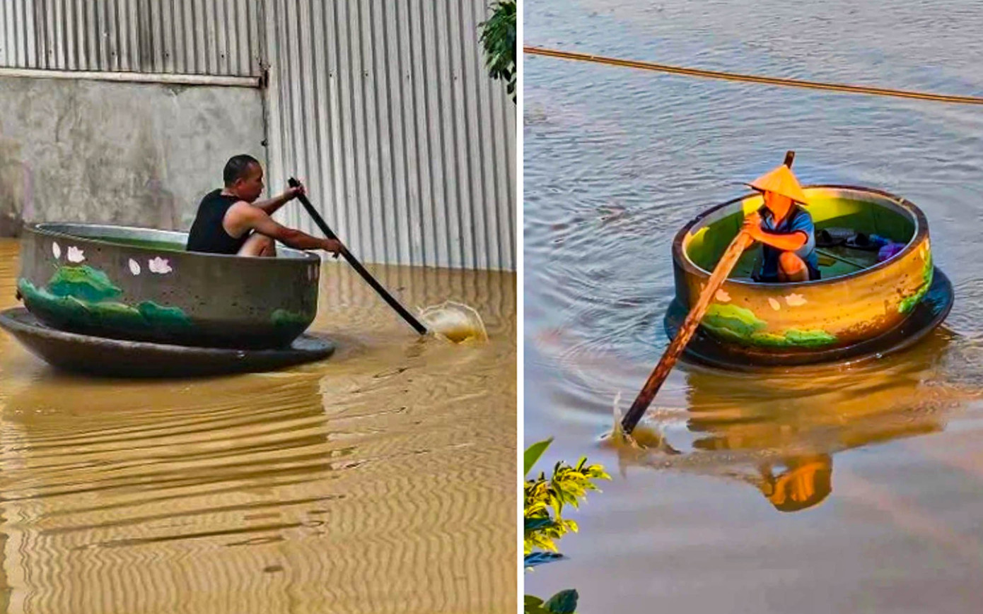 Ngay sau đó, mạng xã hội lan truyền nhiều hình ảnh mô hình chén trà được người dân tận dụng làm “thuyền” di chuyển khi nước lũ dâng cao tại Thái Nguyên, thu hút đông đảo sự chú ý của nhiều người.