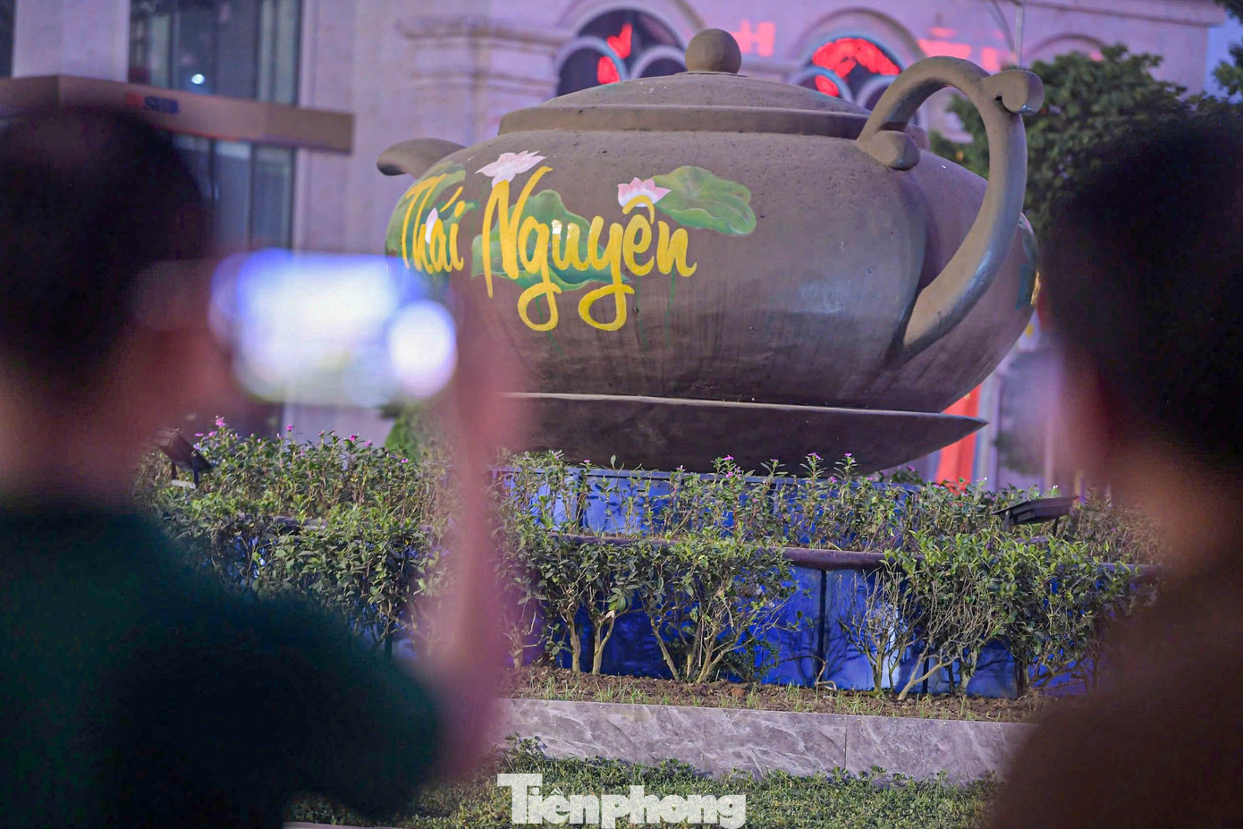 Được biết, 3 chén trà bị cuốn trôi thuộc bộ ấm chén khổng lồ đặt tại quảng trường Võ Nguyên Giáp (tỉnh Thái Nguyên) nhân dịp Tết 2025, biểu tượng văn hóa trà của địa phương. Hiện, ấm trà vẫn còn nguyên, chỉ 3 chén bị mất.
