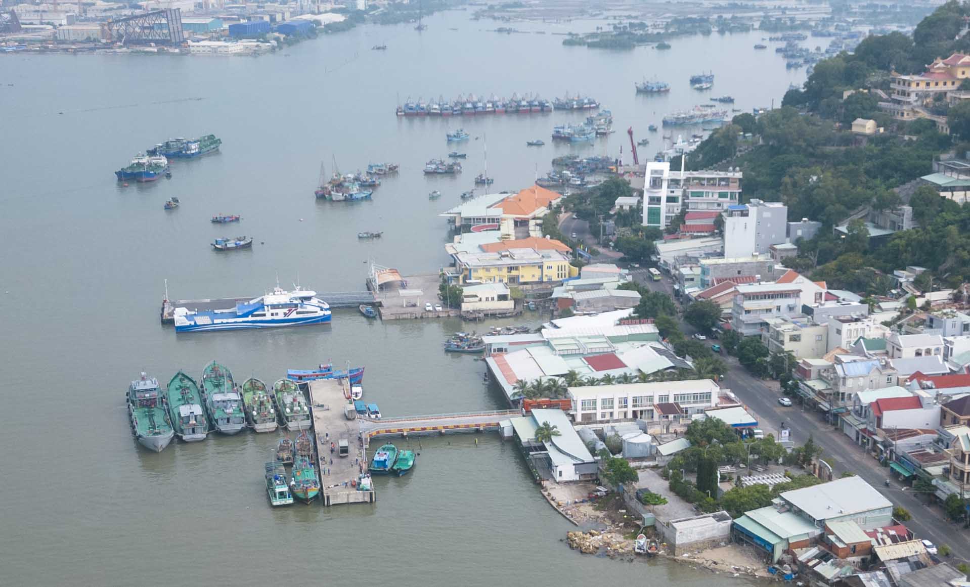 Khu vực phía Vũng Tàu nằm dọc tuyến đường Trần Phú, tập trung đông đúc khu dân cư, bến cảng và hàng trăm tàu thuyền neo đậu.