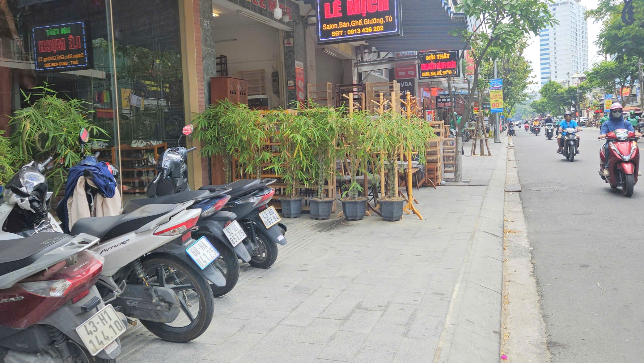 Theo kế hoạch 109 của UBND TP Đà Nẵng, TP đưa ra phương án kẻ vạch phân định vỉa hè dựa trên bề rộng. Vỉa hè dưới 4 m sẽ bố trí 1,5 m sát nhà dân cho người đi bộ, phần còn lại (nếu đủ điều kiện) dùng để xe máy. Vỉa hè từ 4 m đến dưới 6 m sẽ dành khoảng 2 m sát bó vỉa hè để xe máy, còn lại dành cho người đi bộ. Vỉa hè từ 6 m trở lên sẽ dành khoảng 3,5 m sát bó vỉa hè để xe máy, còn lại dành cho người đi bộ. Ảnh: TẤN VIỆT