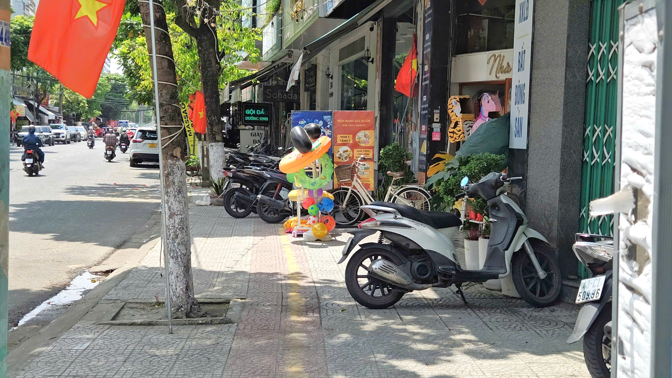 Thực trạng vỉa hè đường Ông Ích Khiêm, một trong những tuyến phố kinh doanh sầm uất nhất Đà Nẵng. Ảnh: TẤN VIỆT