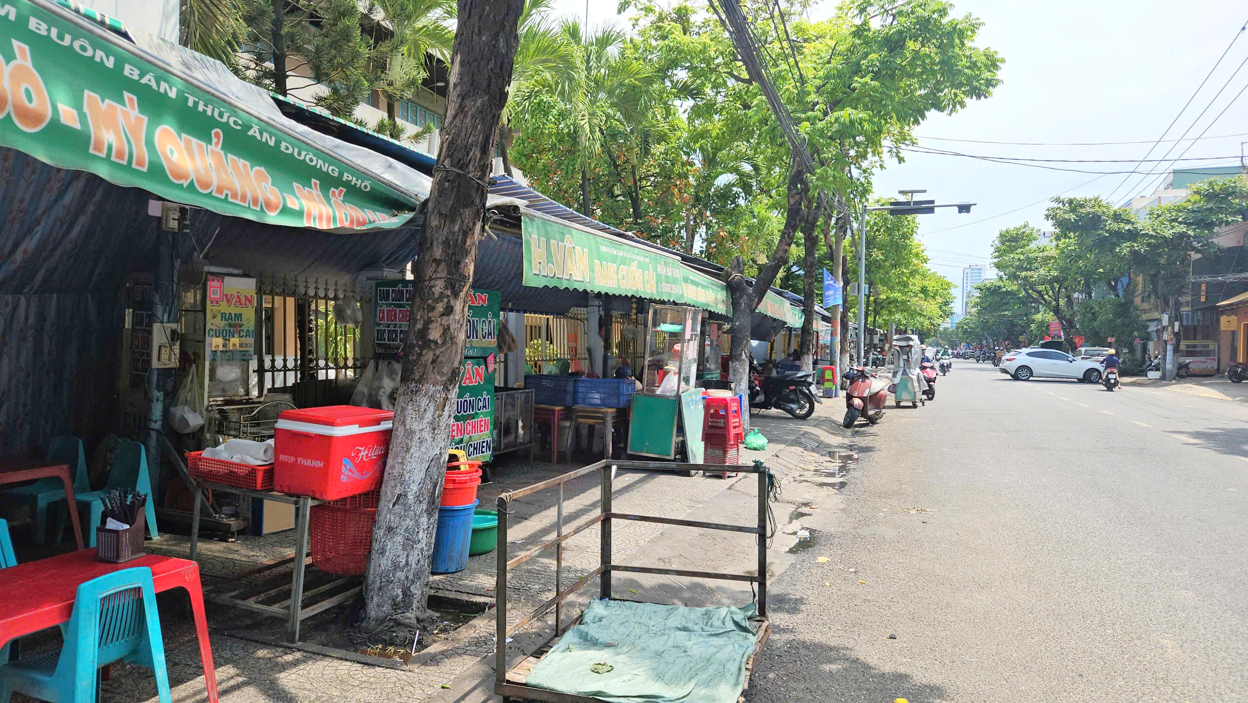Cạnh đó trên đường Hải Phòng, vỉa hè được tận dụng triệt để nhiều năm qua để buôn bán hàng ăn uống. Ảnh: TẤN VIỆT
