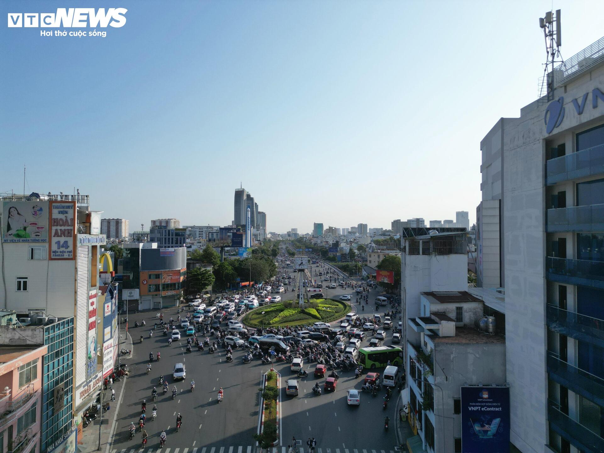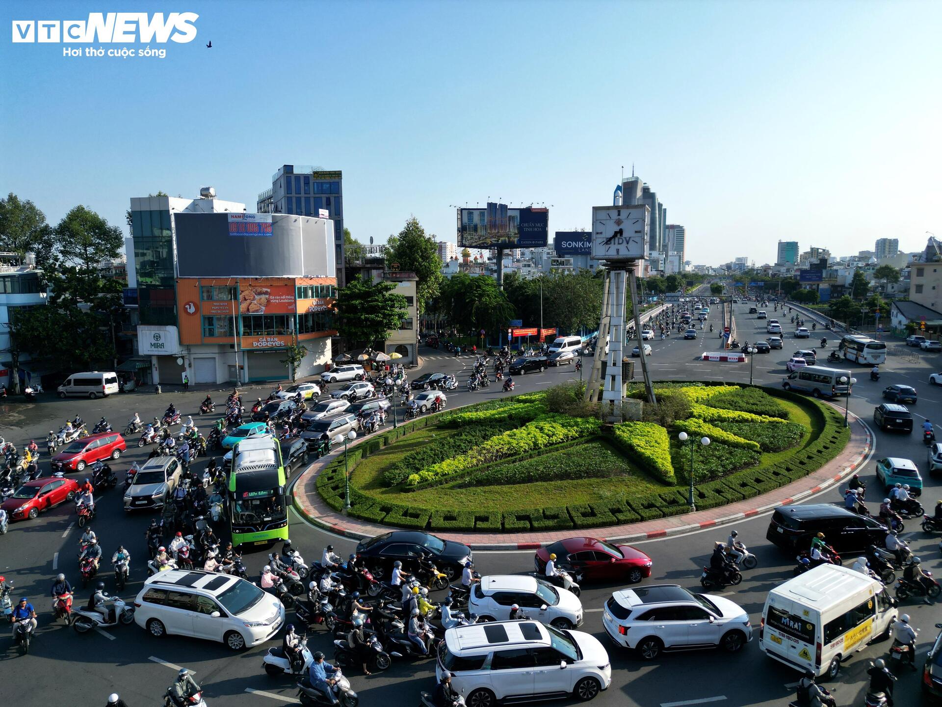 Theo ghi nhận của phóng viên Báo điện tử VTC News vào sáng đầu tuần, lượng phương tiện từ đường Điện Biên Phủ đổ về vòng xoay rất đông, khiến tình trạng ùn ứ giao thông diễn ra thường xuyên, đặc biệt vào các khung giờ cao điểm.