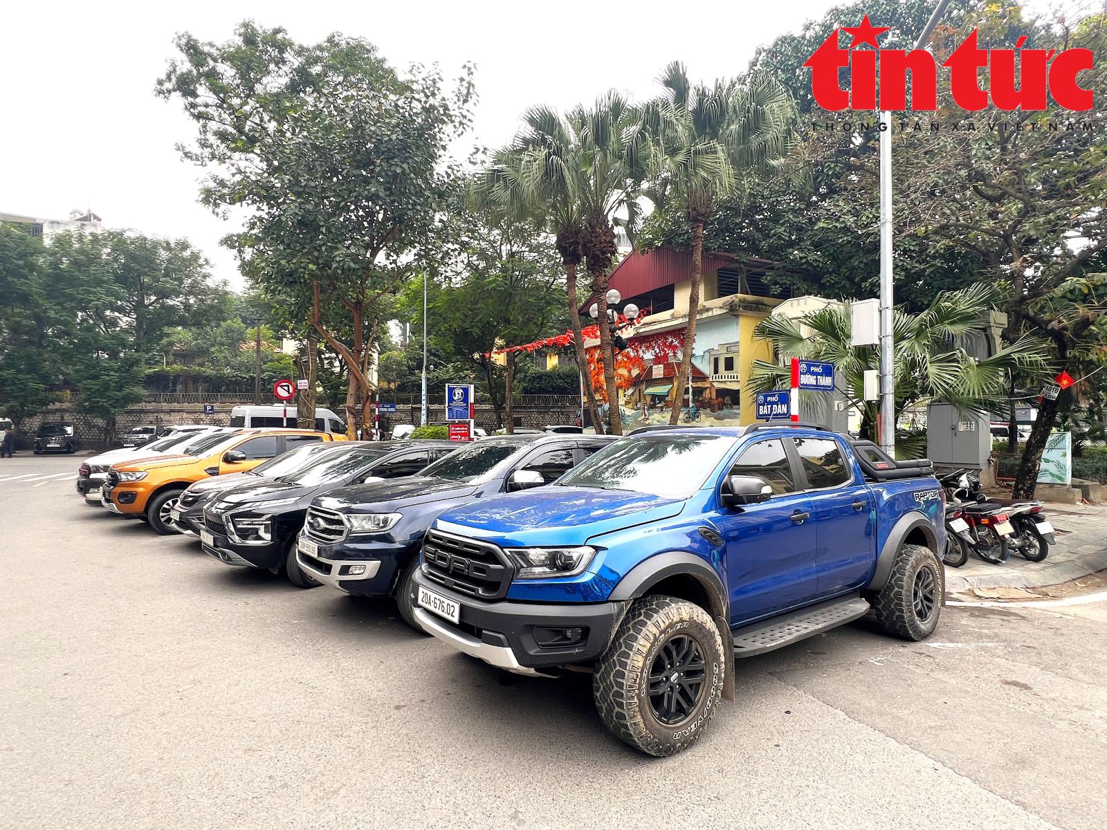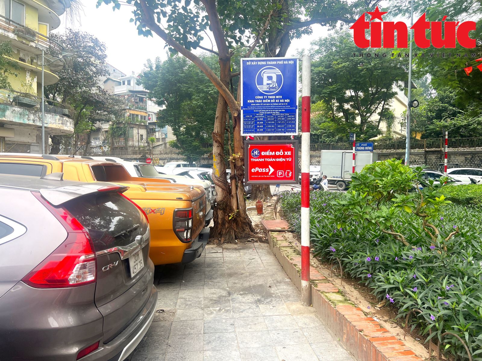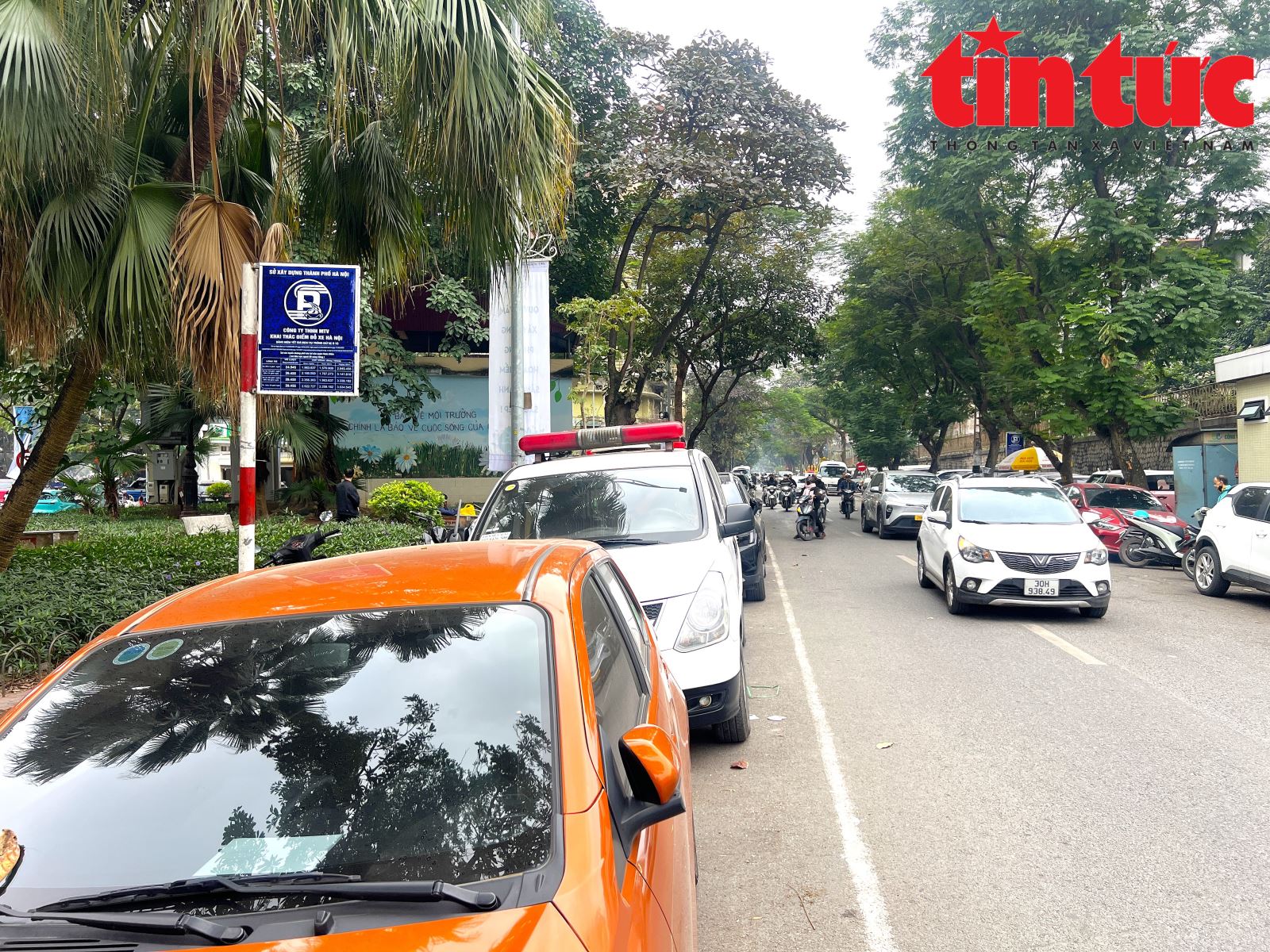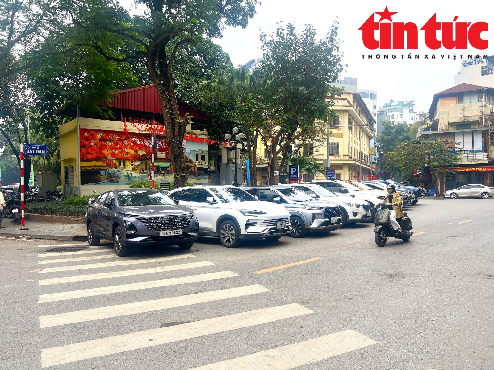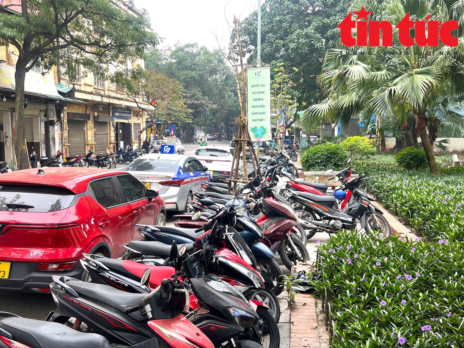 Xe máy, ô tô đỗ kín từ vỉa hè xuống lòng đường khu vực vườn hoa Phùng Hưng - Bát Đàn.