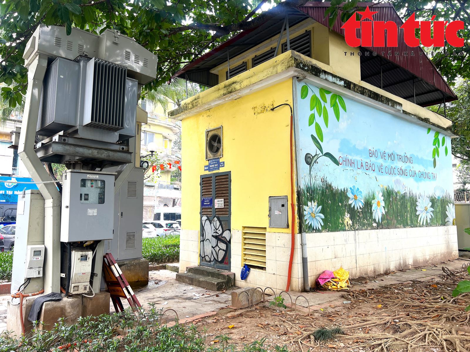 Trạm biến áp và bốt điện trong khuôn viên vườn hoa Phùng Hưng - Bát Đàn nồng nặc mùi xú uế.