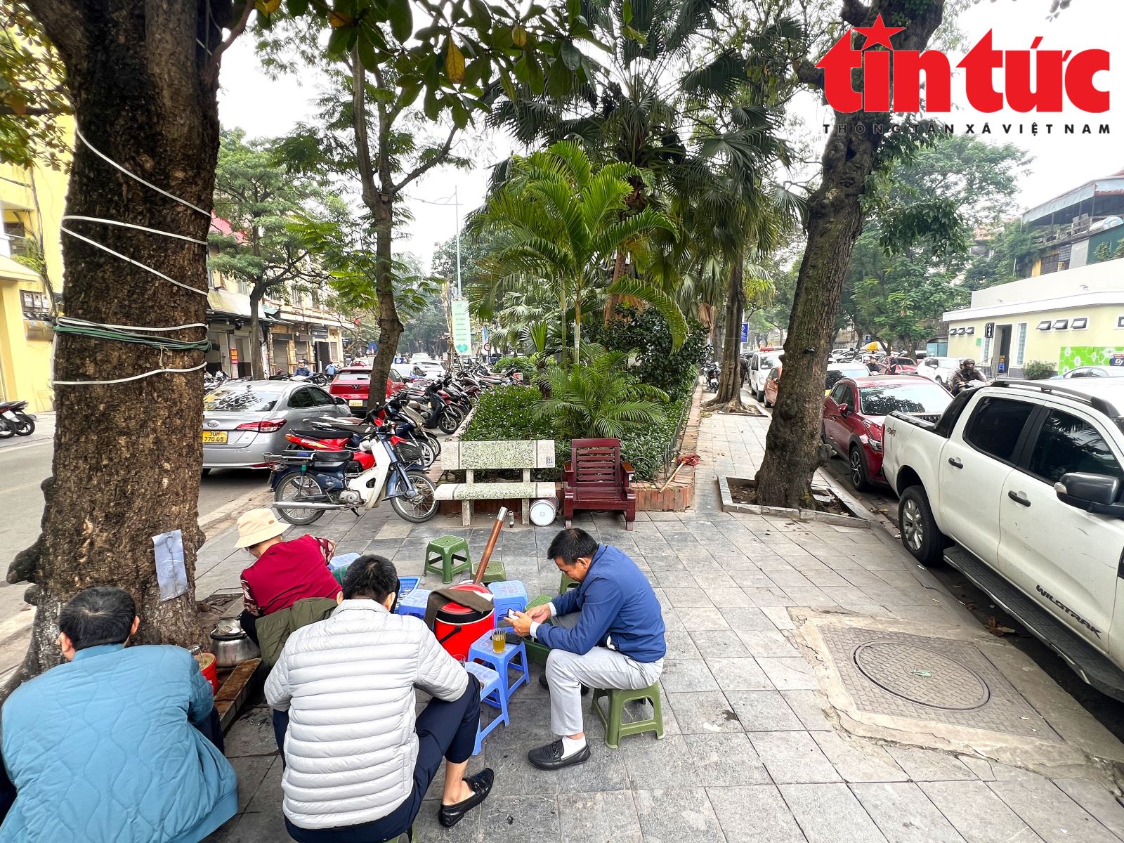 Một góc vỉa hè vườn hoa đang trở thành quán trà đá tự phát...