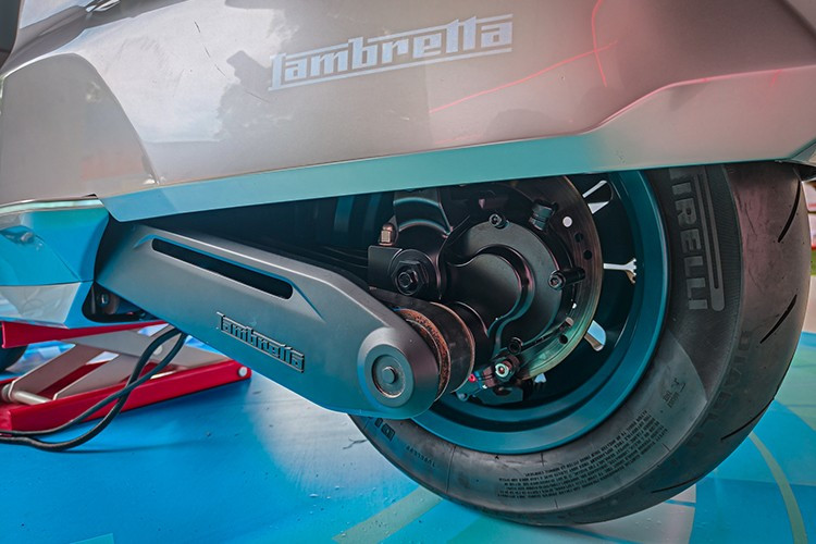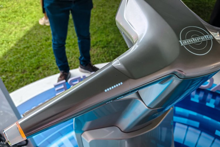 Logo của Lambretta được khắc tại sàn để chân. Nhiều vị trí khác của xe có logo truyền thống 'Lambretta' và dòng chữ 'Lambretta'. Ở tay lái của xe xuất hiện thông số pin khá đơn giản nhưng dễ quan sát cho người sử dụng.