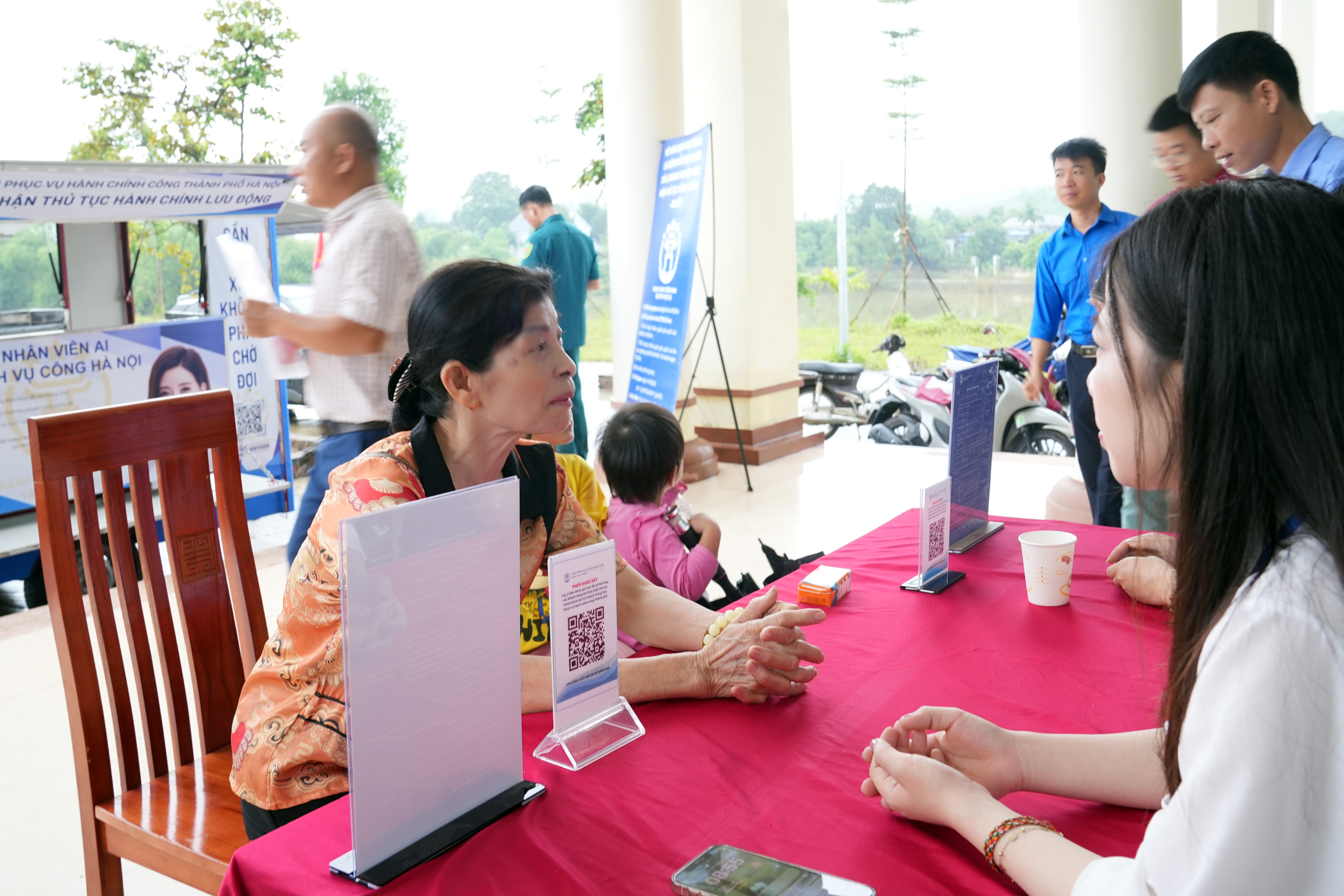 Trong sáng 14-10, nhiều người dân đã tới khu vực nhà văn hóa thôn Đồi Dùng để xử lý thủ tục hành chính, trải nghiệm mô hình xe dịch vụ công. Trong đó, có nhiều bà con dân tộc Mường