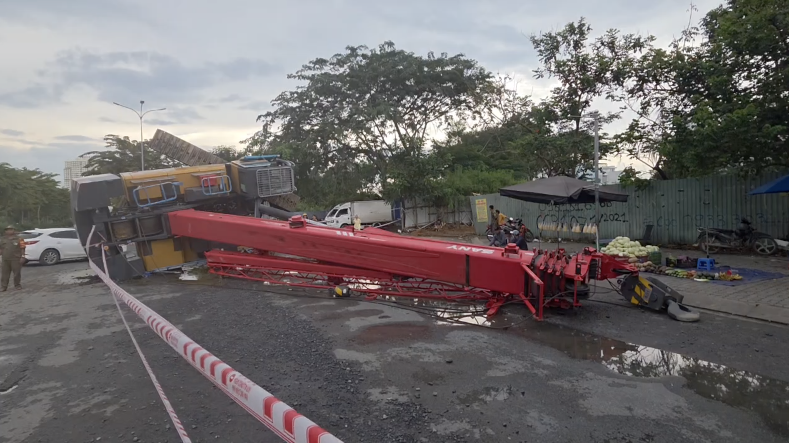 Theo một nhân chứng tại hiện trường, chiếc xe đầu kéo vừa vận chuyển cần cẩu đến công trình và chưa kịp hạ xuống thì dây xích bị đứt, khiến toàn bộ khối kim loại lớn nghiêng sang bên, đổ ập xuống mặt đường.