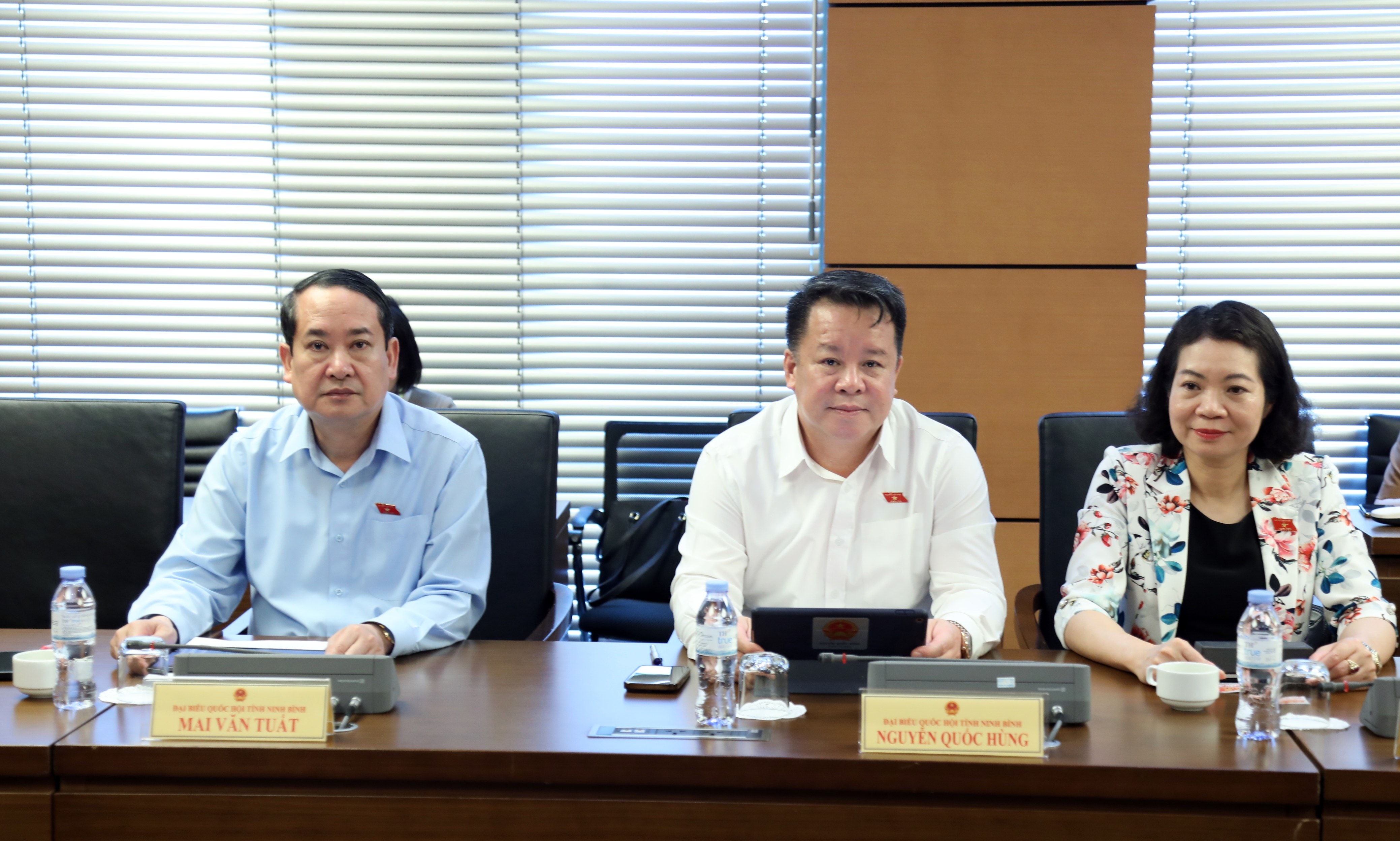 Trưởng Đoàn ĐBQH tỉnh Ninh Bình Mai Văn Tuất và các đại biểu dự thảo luận tại Tổ 10
