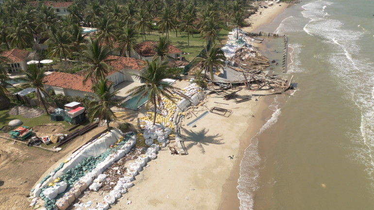 Sóng biển xâm thực đánh sập một khu vực nhà hàng.