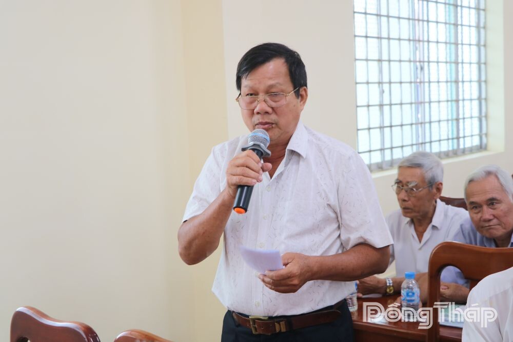 Cử tri Nguyễn Văn Thiện (ấp Mỹ Đông 3, xã Mỹ Quí) phát biểu tại buổi tiếp xúc.